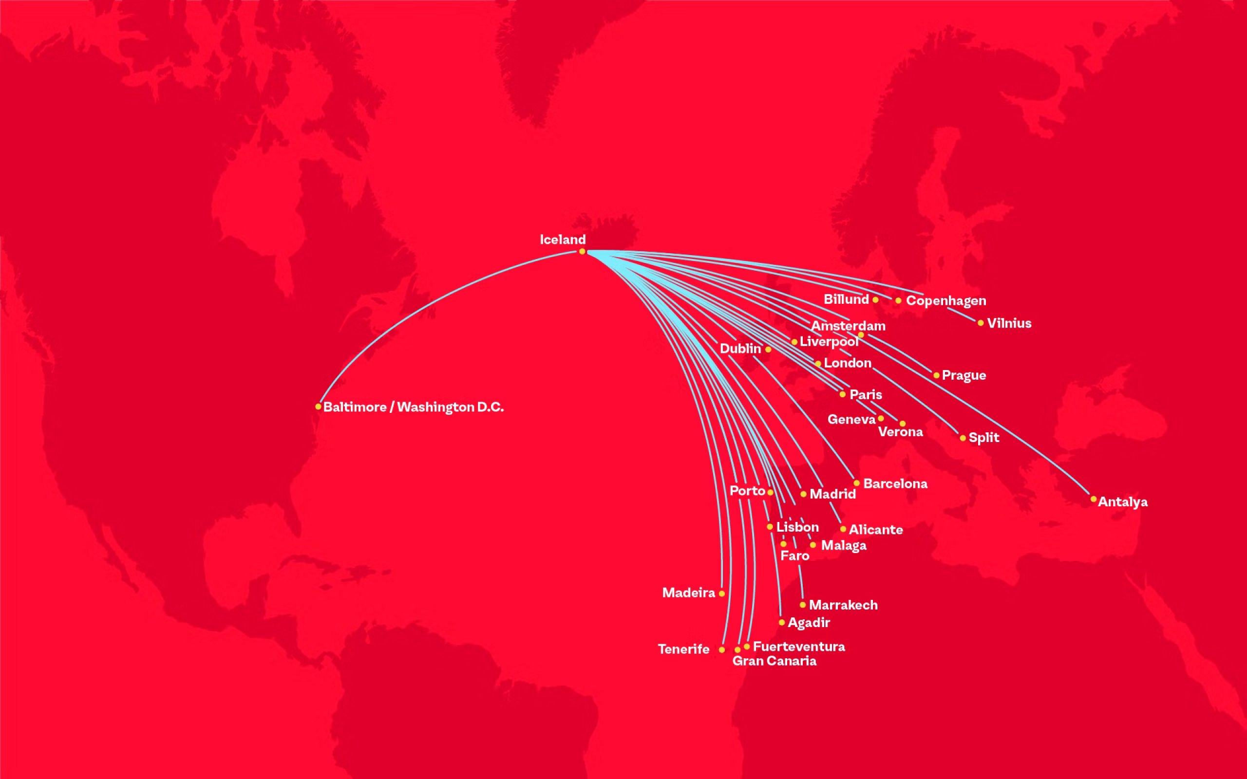Flygningarna till Nordamerika fasades gradvis ut, med fokus på att transportera islänningar till semesterdestinationer vid kusten och även på rutter med motsatt potential - att föra turister till Island. Till exempel var rutterna från Prag PRG, Warszawa WAW, London STN, Vilnius VNO eller Paris CDG populära.