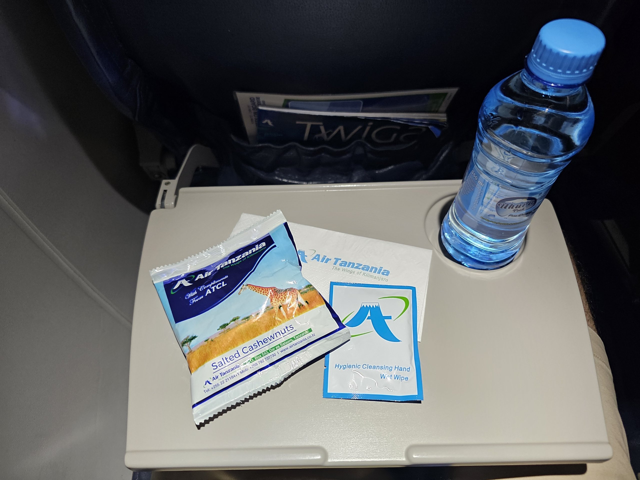 På inrikesflygningar inom Tanzania får du vatten och ett litet sött eller salt mellanmål.