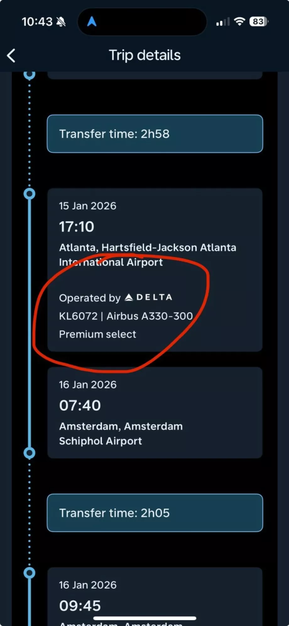 Så här undrar jag om det här är en bugg i KLM-appen eller om de faktiskt kommer att sälja mig en biljett från Wien till Bogotá (via Amsterdam och Atlanta) på en lätt biljettpris, med KLM-opererade flygningar som ekonomi men Delta-flygningar som visas på appen som Premium select. Allt detta för 19k kronor som en tur och retur. Har någon någon erfarenhet? 😇 mycket frestande
