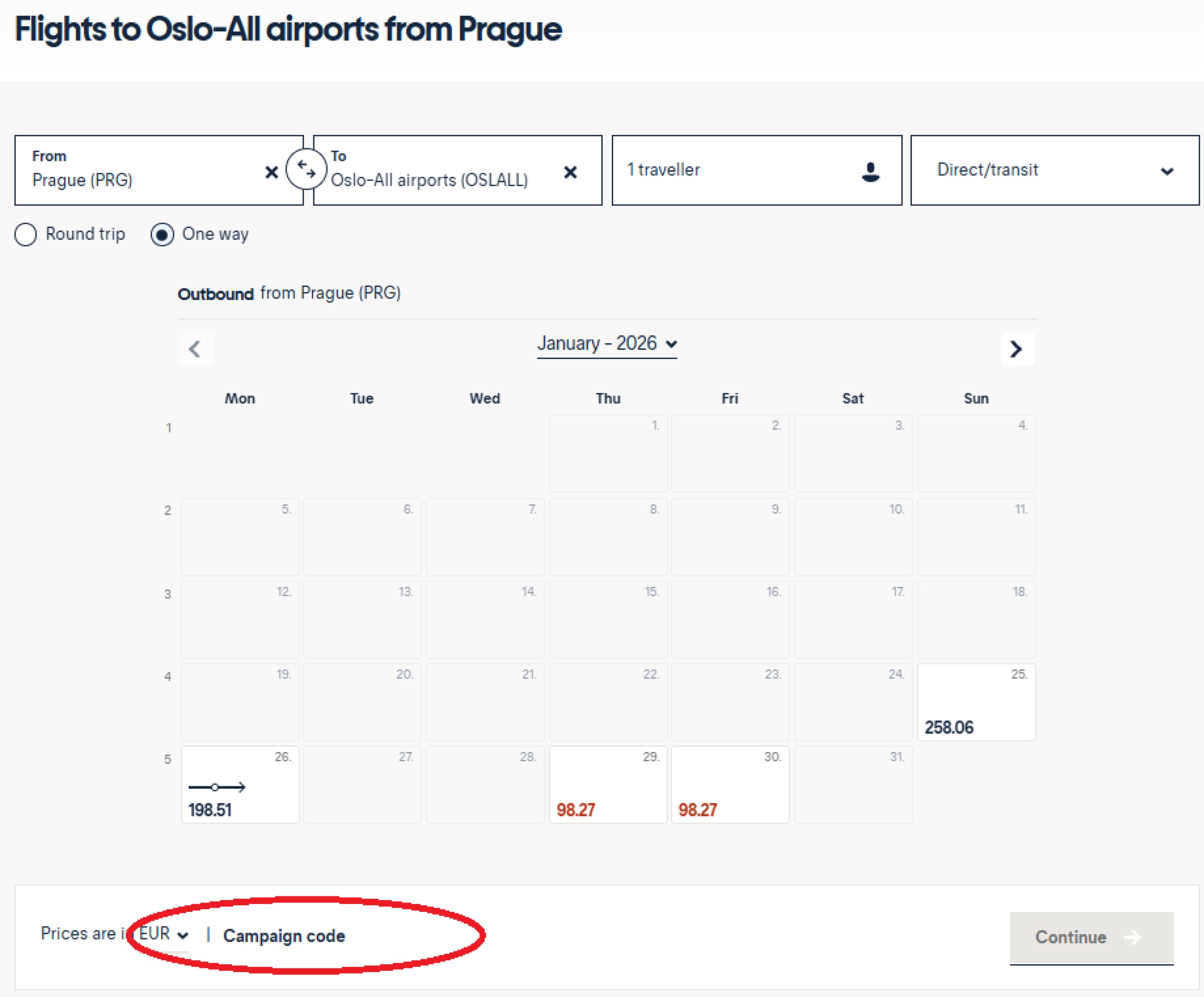 - 💡 Tips: Om du är mellan 12-25 år gammal, använd kampanjkoden UNDER26 för flygningar över Skandinavien. Du får specialpriser för enkelresor, ofta 20 % rabatt. Kampanjkoden anges i rutan "Kampanjkod " när du ser kalendern för billiga flyg, se bilderna nedan.