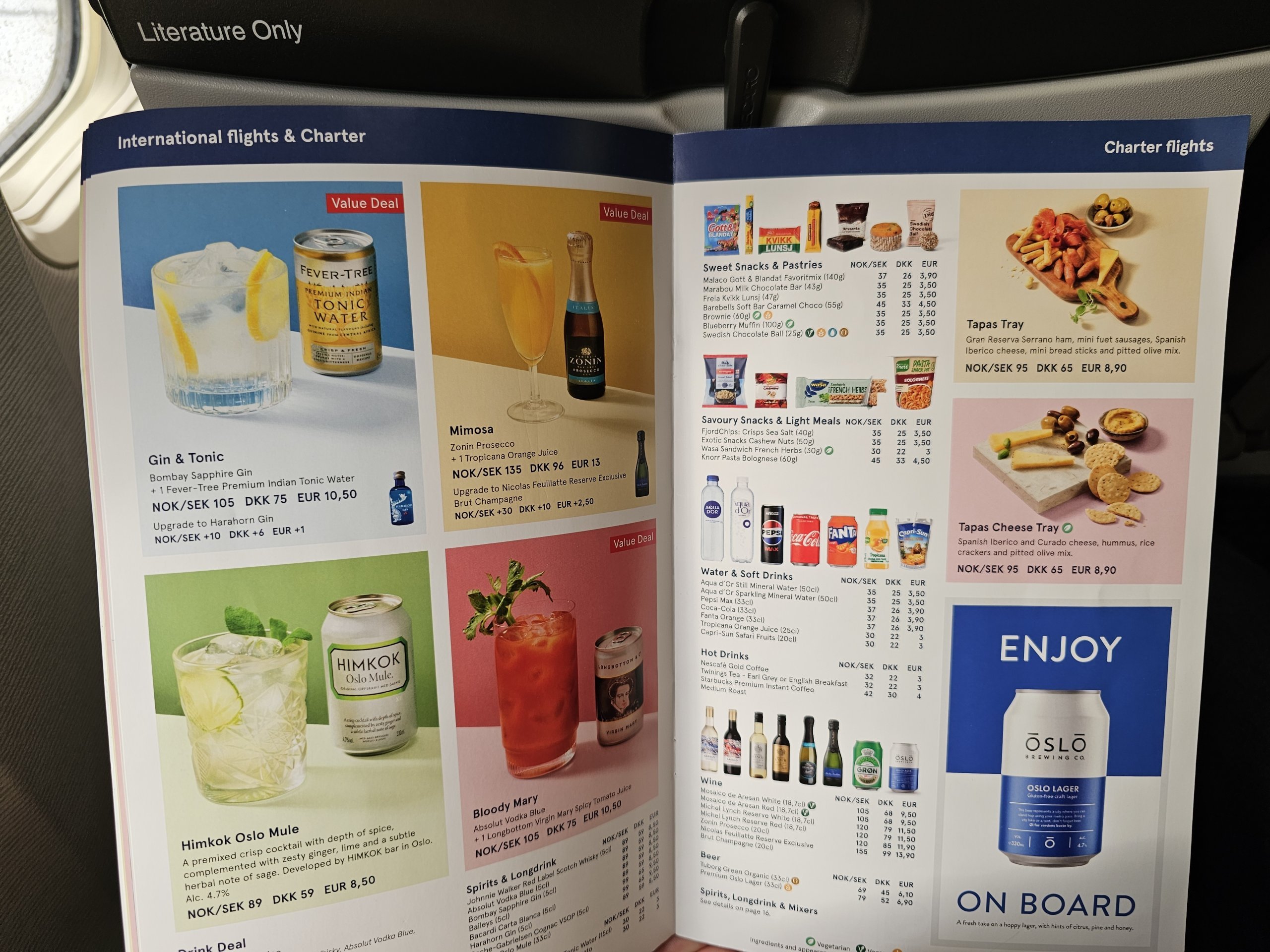 Varm mat kan beställas 36 timmar före avgång på flygbolagets webbplats: norwegian.com/uk/travel-info/on-board/food-and-drinks.