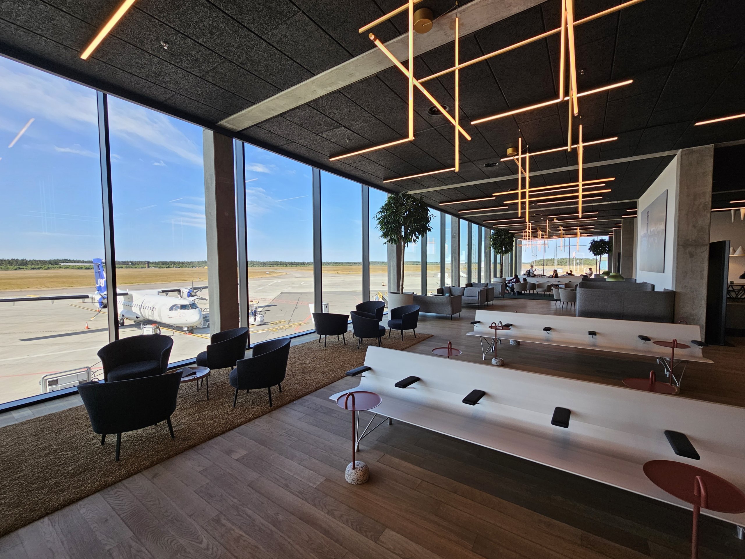 Flygplatsens lounge är endast öppen före avgångar till Köpenhamn, Stockholm och Oslo med SkyTeam-flyg som trafikeras av SAS.