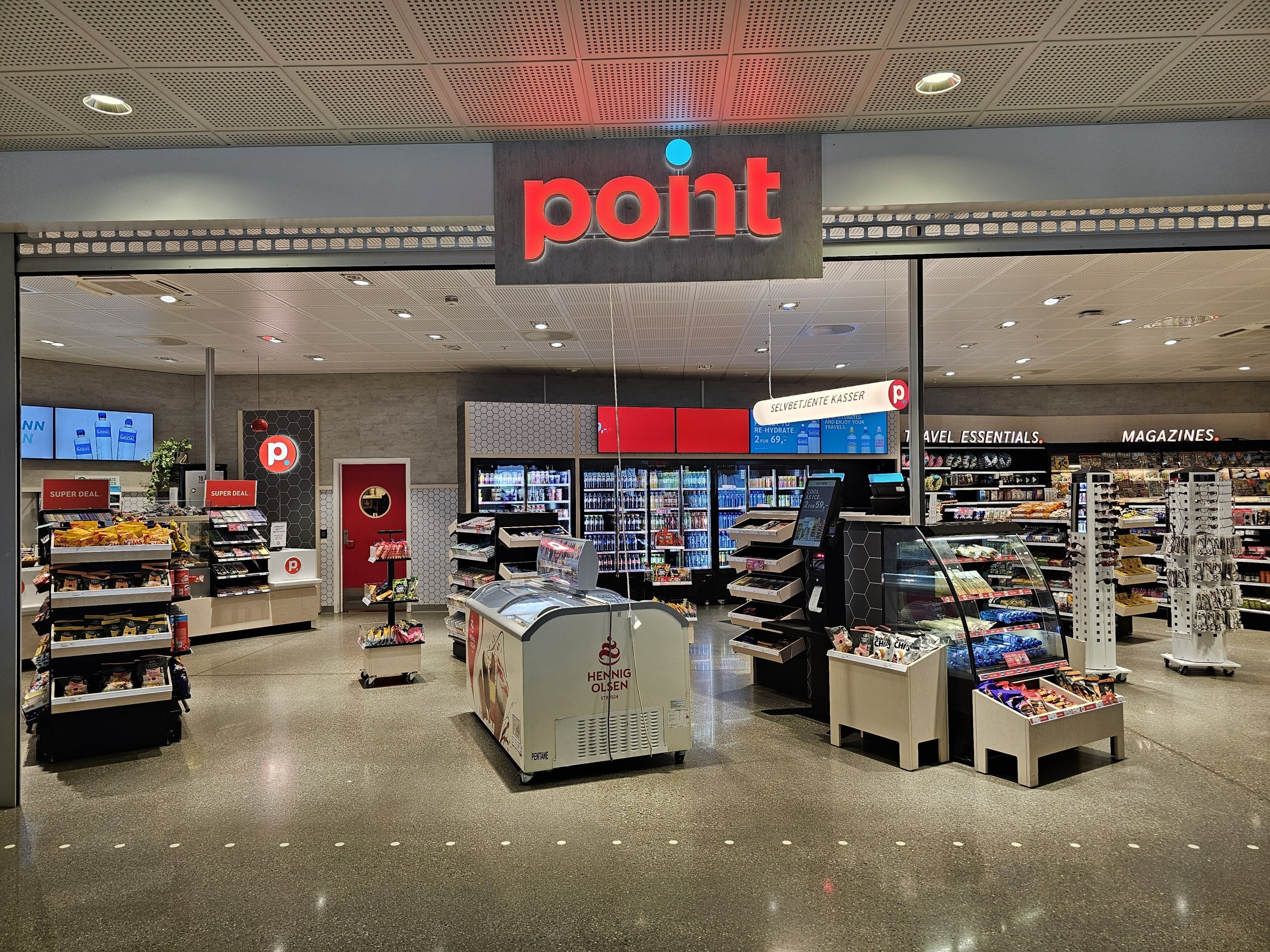 Du kan köpa snabbmat i form av färdigförpackade sallader, baguetter, smörgåsar, reseutrustning eller små medicinska förnödenheter, godis och drycker på Point mini-market.