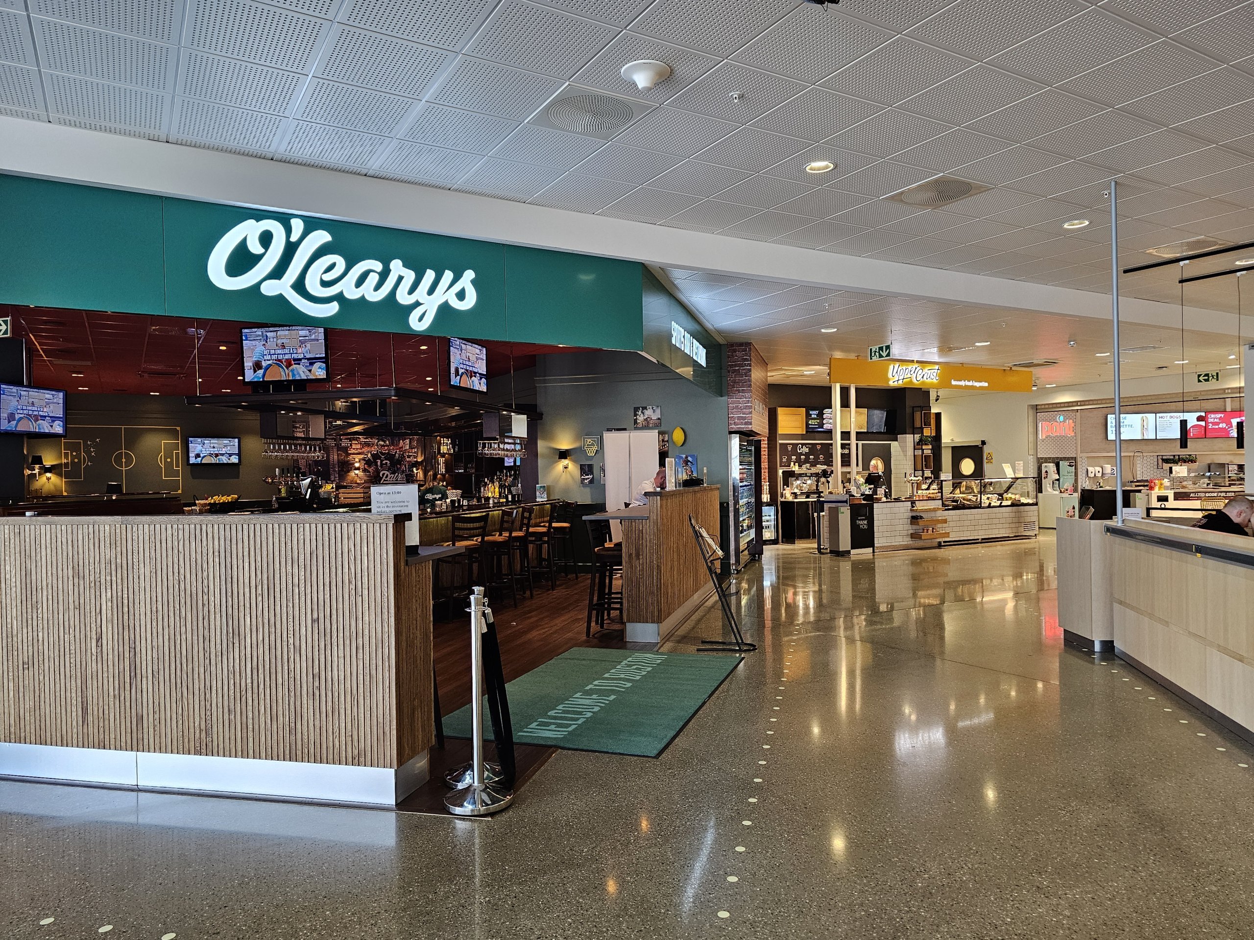 Det finns 3 olika matställen efter säkerhetskontrollen, bland annat det relativt välkända varumärket Upper Crust.
