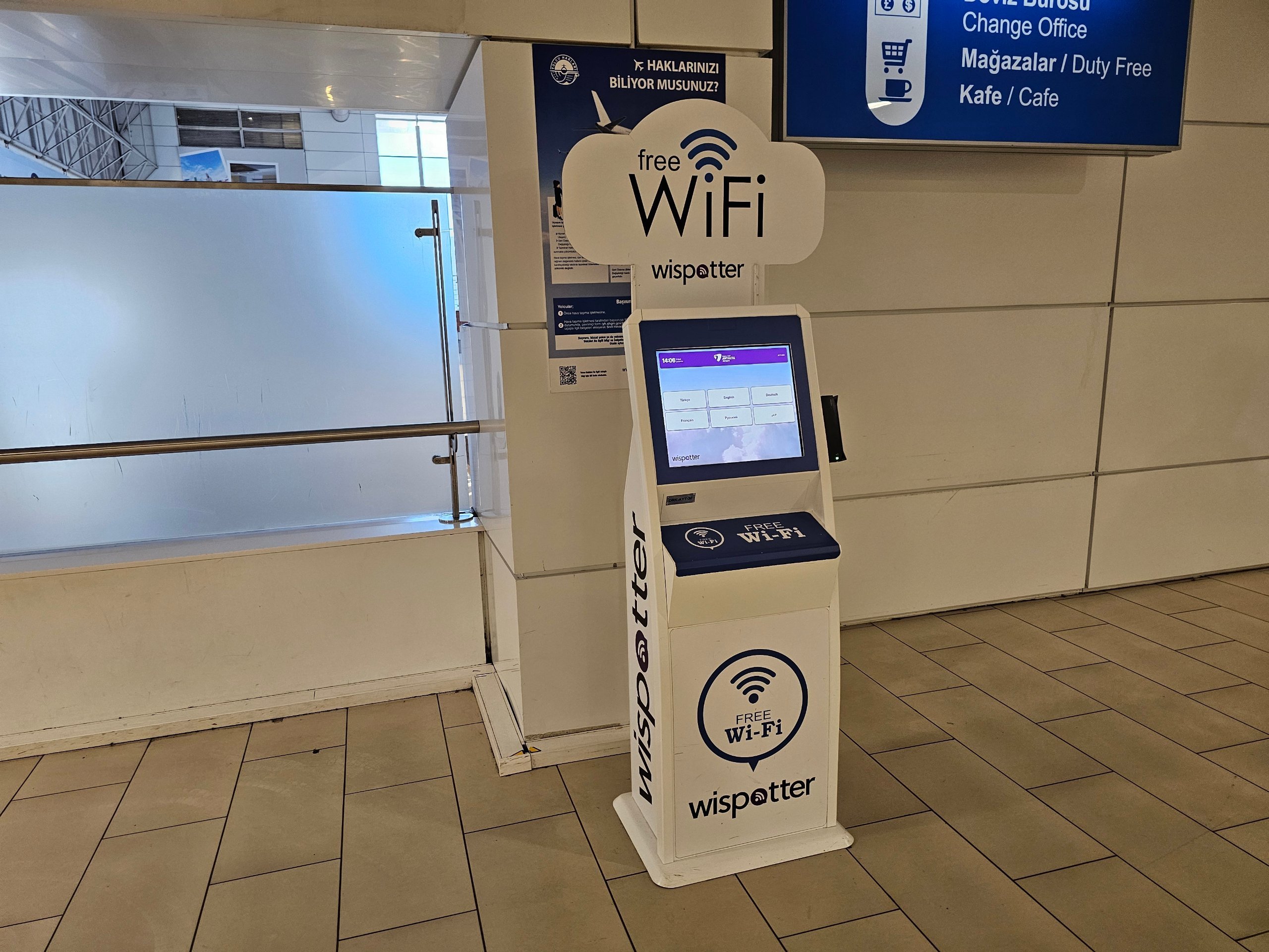 Freewifi är endast tillgängligt i 60 minuter. Lösenordet kan endast erhållas från de officiella kioskerna som finns på hela flygplatsen, där du måste ange antingen ett riktigt telefonnummer eller skanna ditt pass.