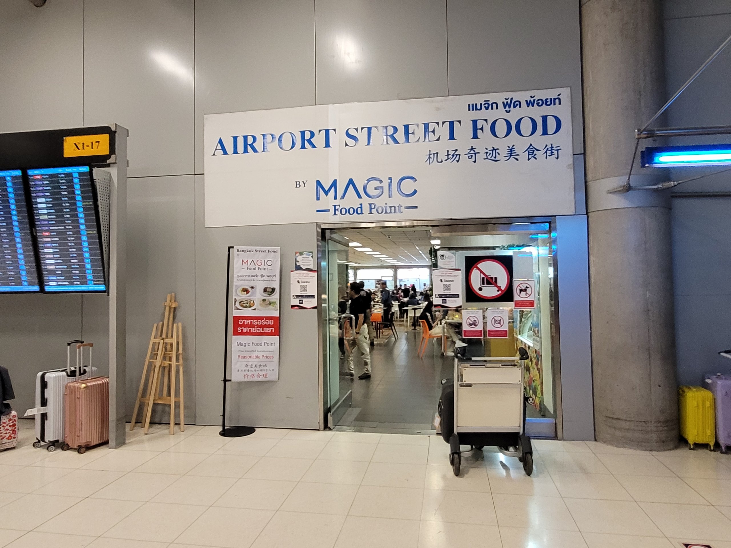 TIPS: på bottenvåningen i den allmänna delen (markerad som nivå 1) hittar du det folkliga matstället "Airport Street Food by Magic Food Point" längst bort (till höger när du går av tåget). Här serveras mestadels thailändska och kinesiska rätter till priser från 80 thb för en huvudmåltid. Här kommer du att äta gott och mycket. Omedelbart efter att du har gått in till vänster måste du växla pengar i kassan mot kuponger, som du sedan använder för att betala för din mat vid varje stånd.