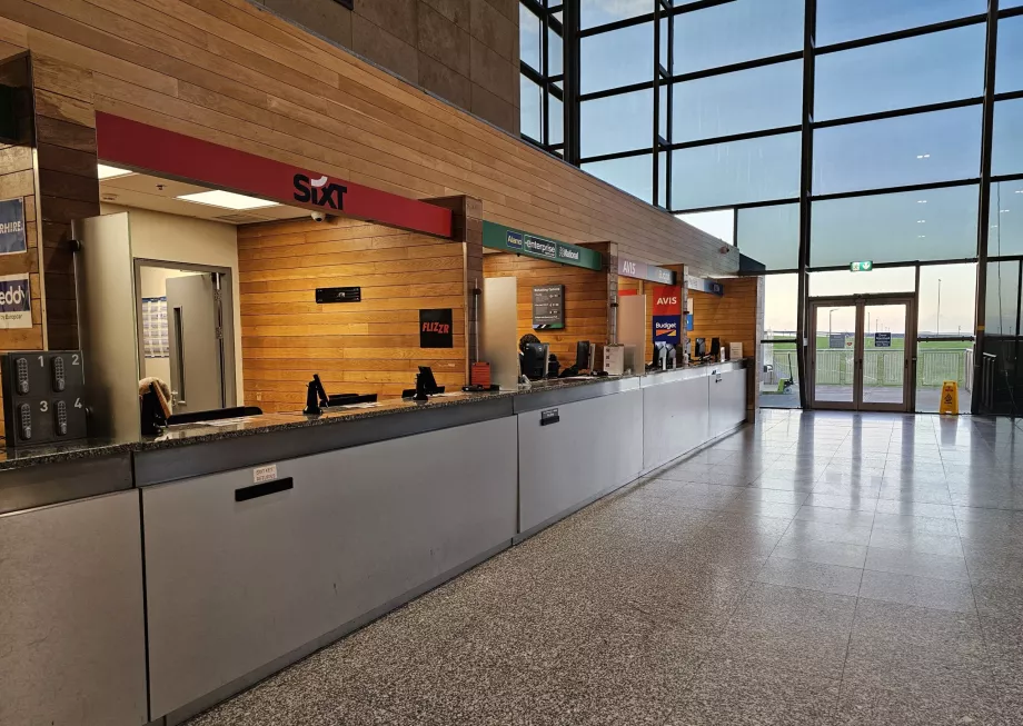 Det finns filialer till många stora uthyrningsföretag i ankomsthallen.
