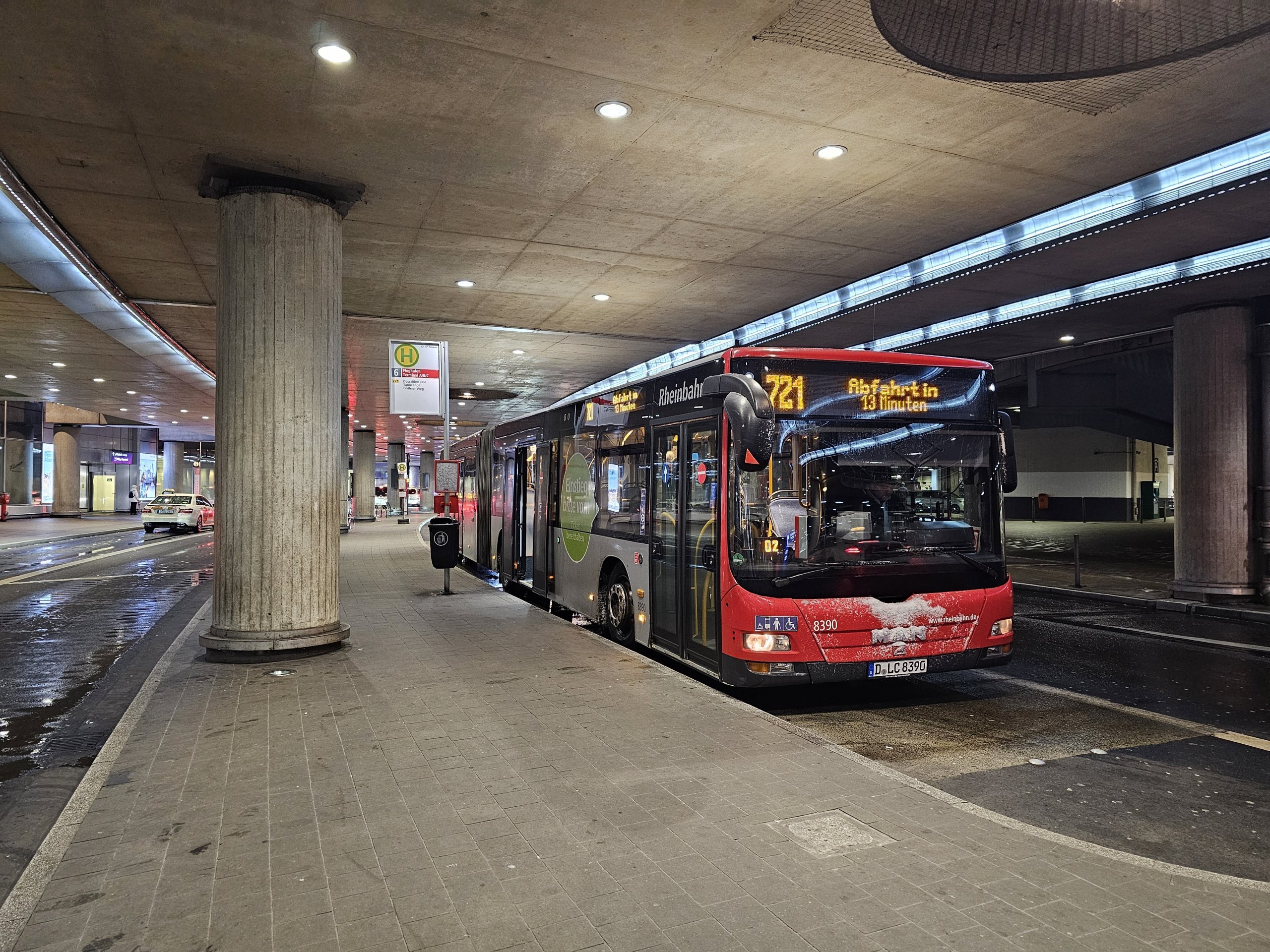 Dessutom stannar följande busslinjer vid huvudterminalen för bekväm resa till Düsseldorfs centrum eller andra närliggande städer.