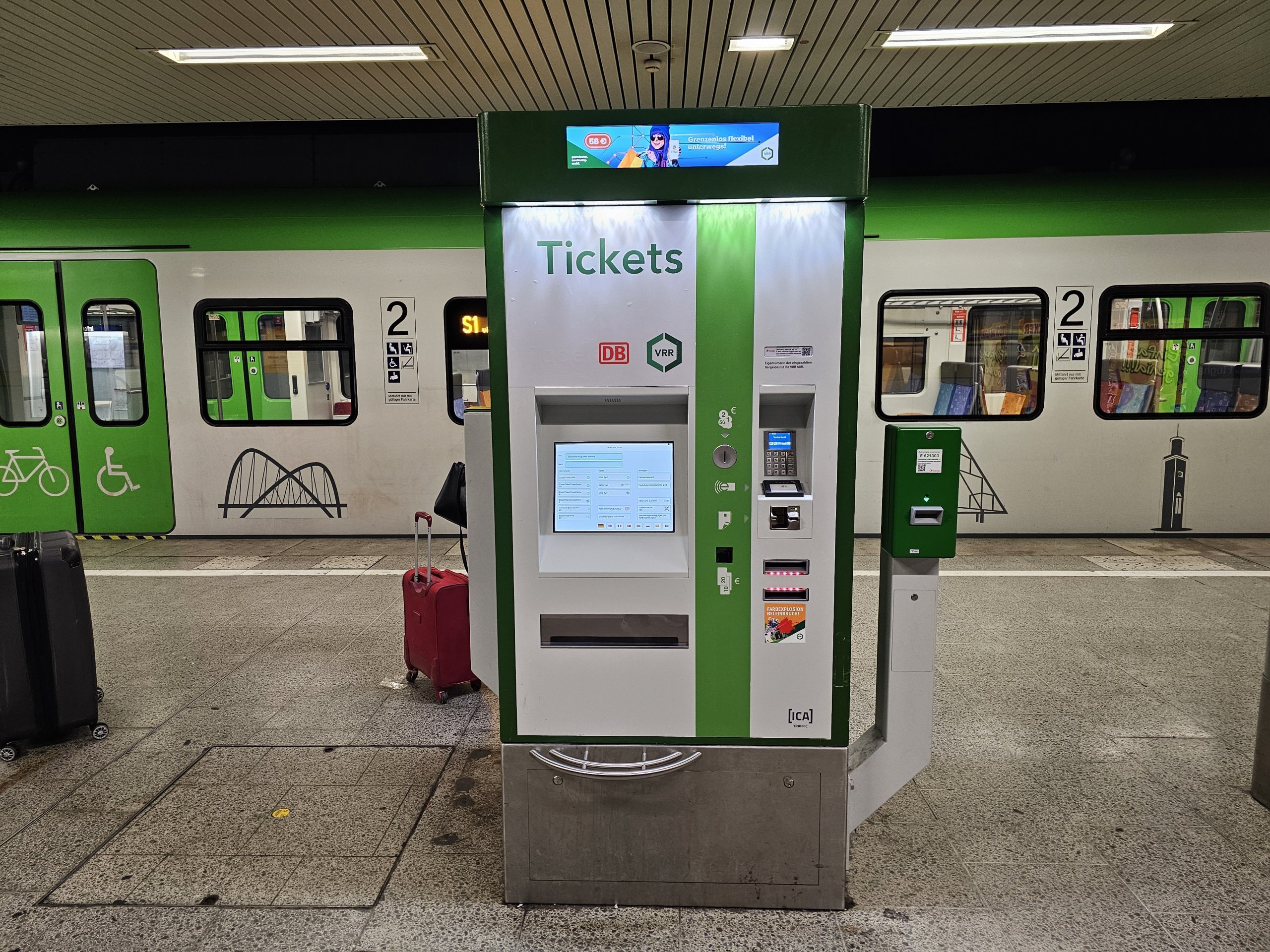 Biljetter kan köpas i biljettautomater på alla stationer eller via Rheinbahns mobilapp.