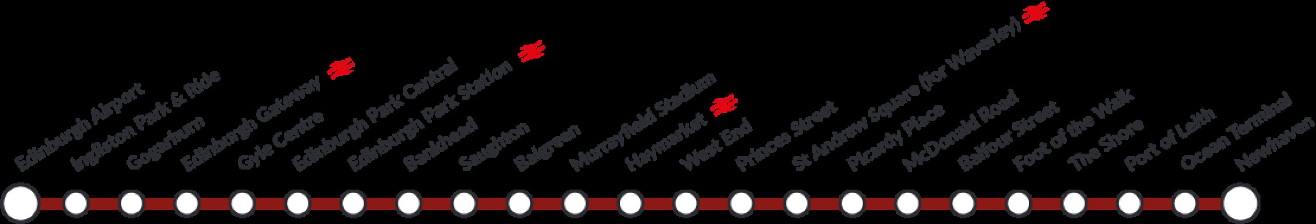 För att hitta anslutningar, tidtabeller eller officiella kartor, besök: edinburghtrams.com