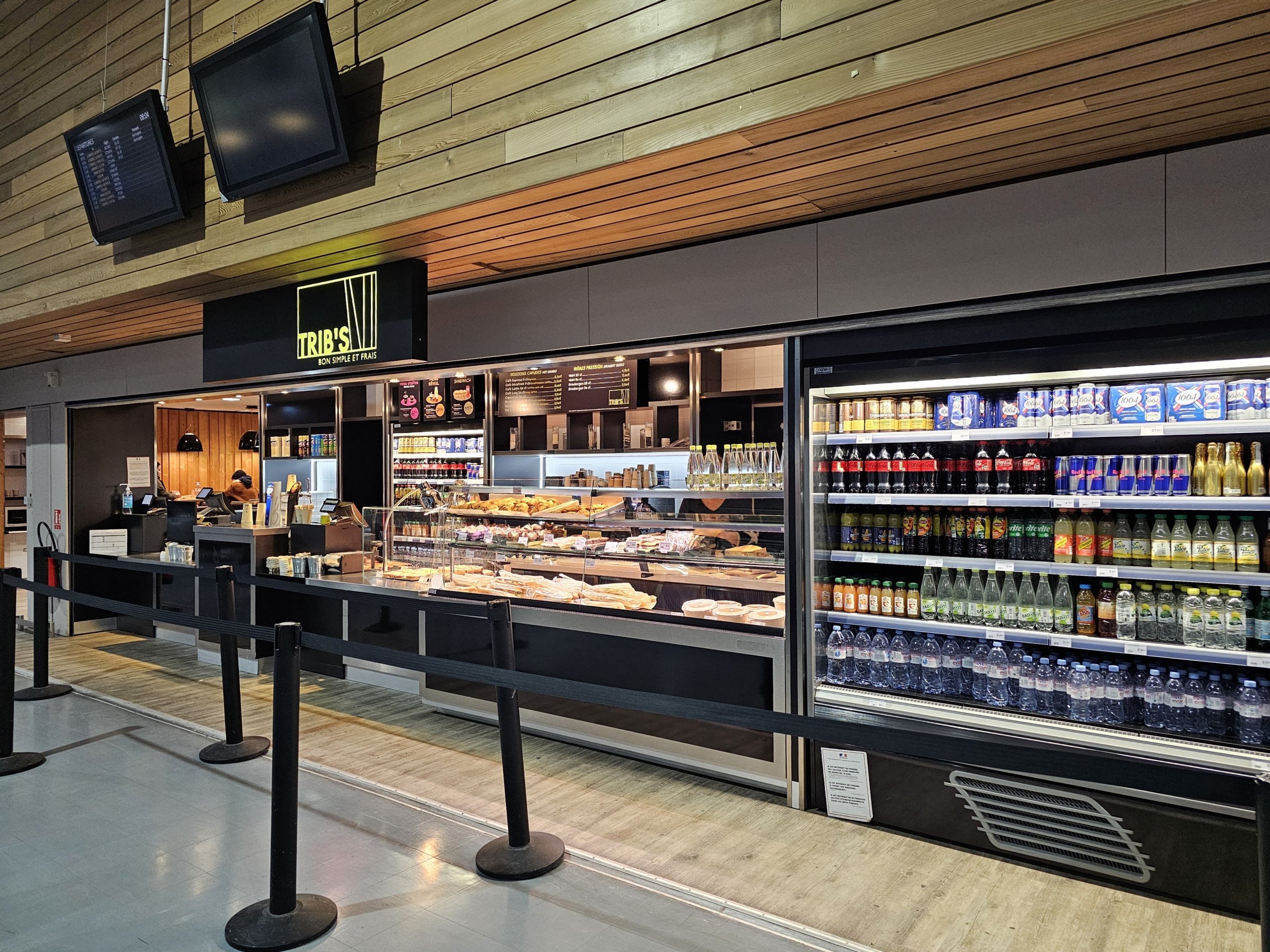 För matservering finns Tribs, som du hittar i det allmänna området (avgångs- och ankomsthallen) och efter säkerhetskontrollen.