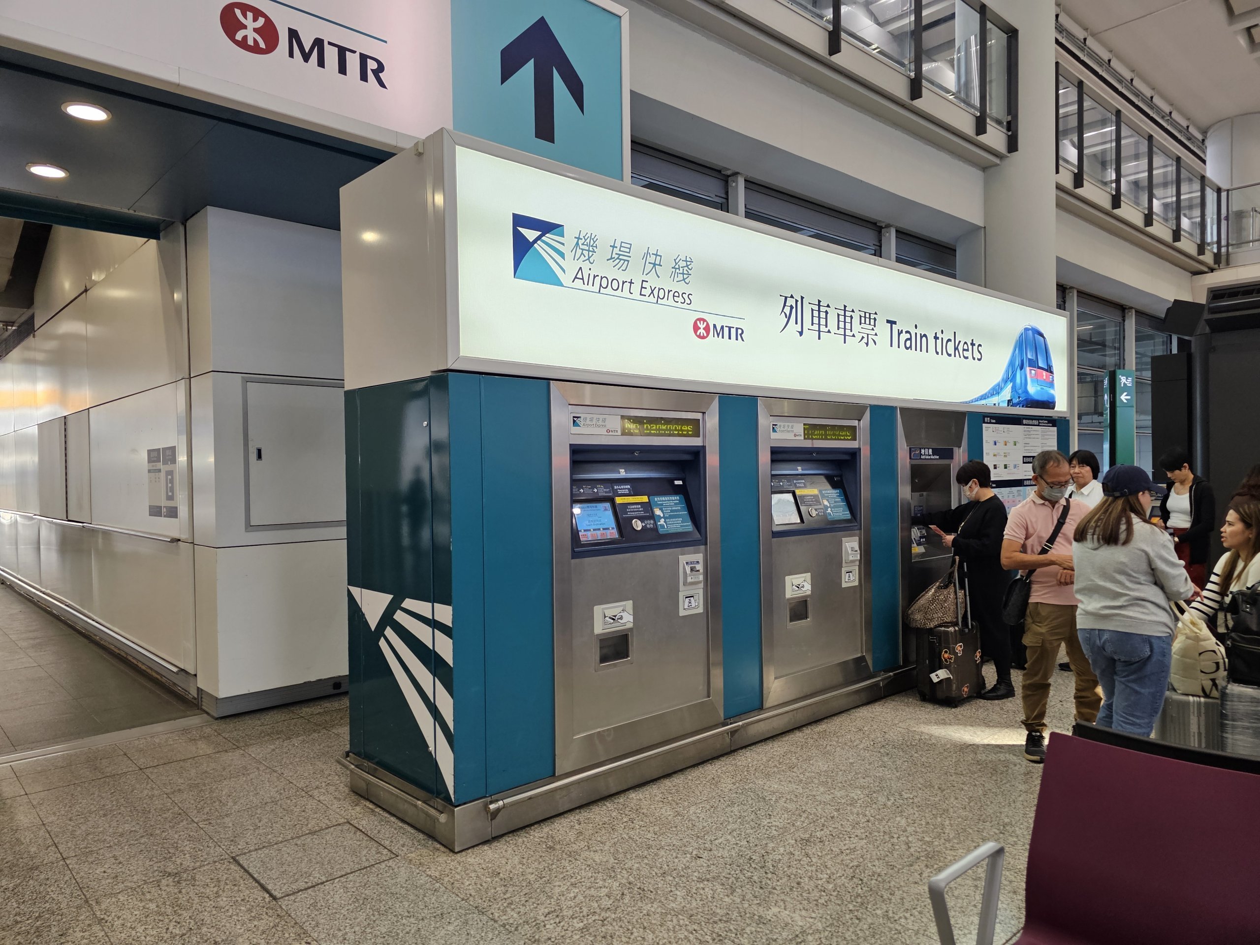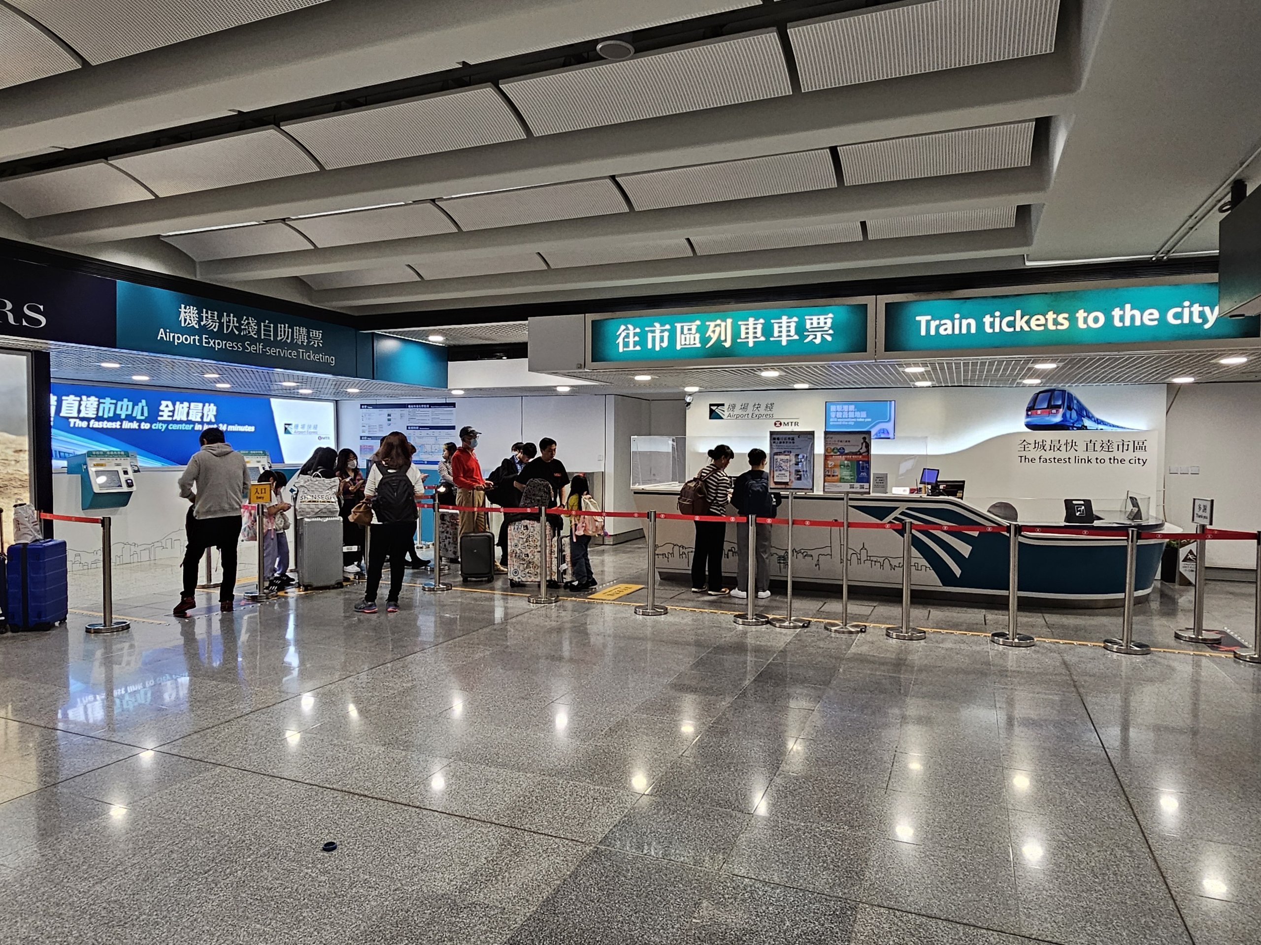 Det snabbaste sättet att ta sig till stadens centrum eller West Kowloons höghastighetstågstation är att ta Metro Airport Express.