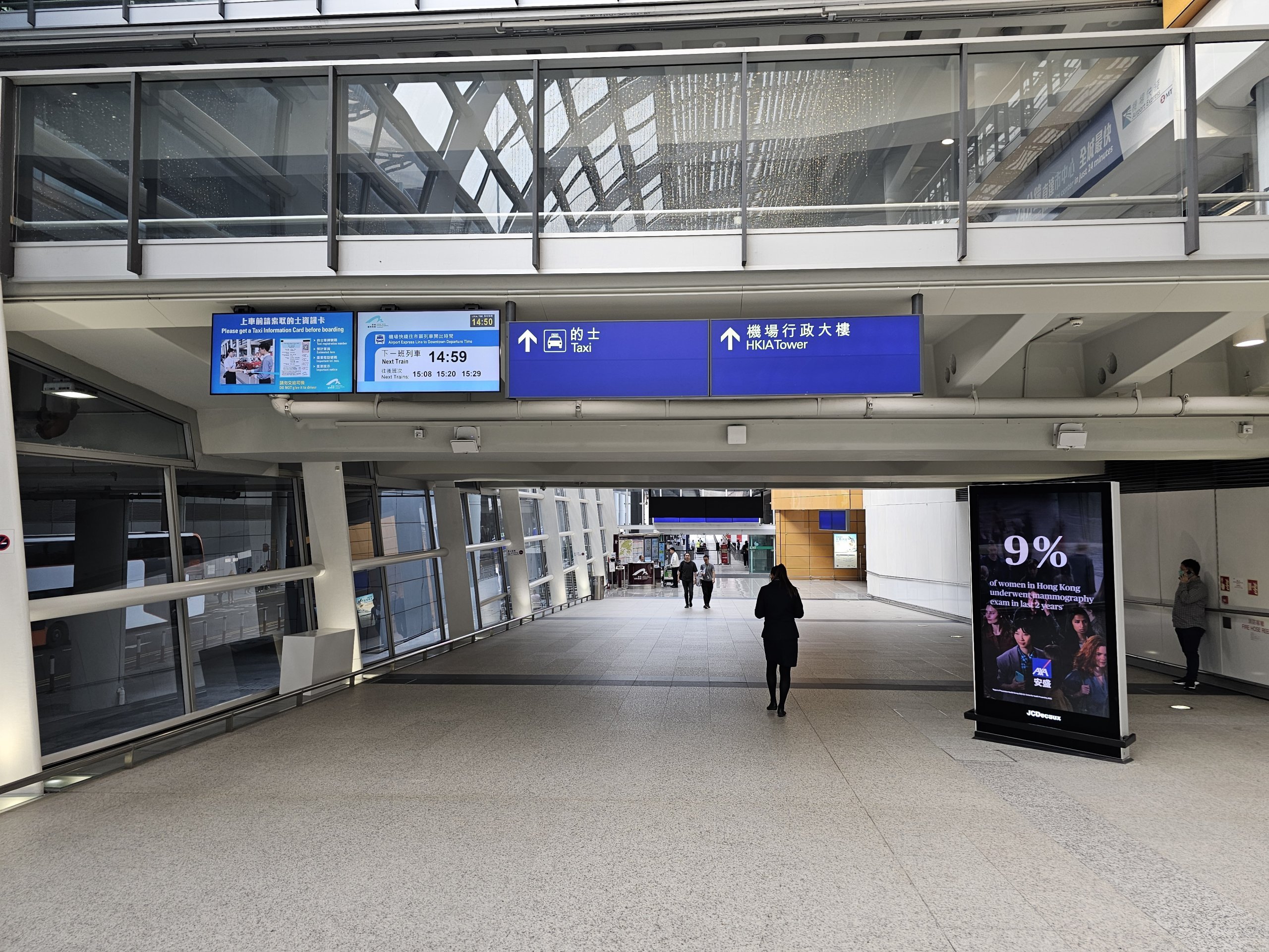 När du kliver av planet följer du skyltarna "Mainland/Macao", som tar dig till en automatiserad underjordisk tågstation.