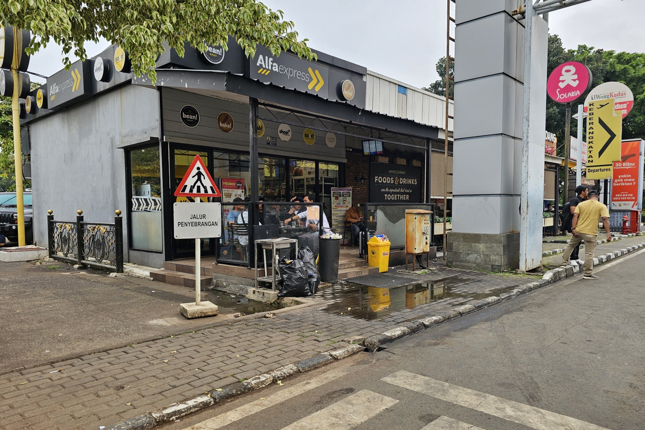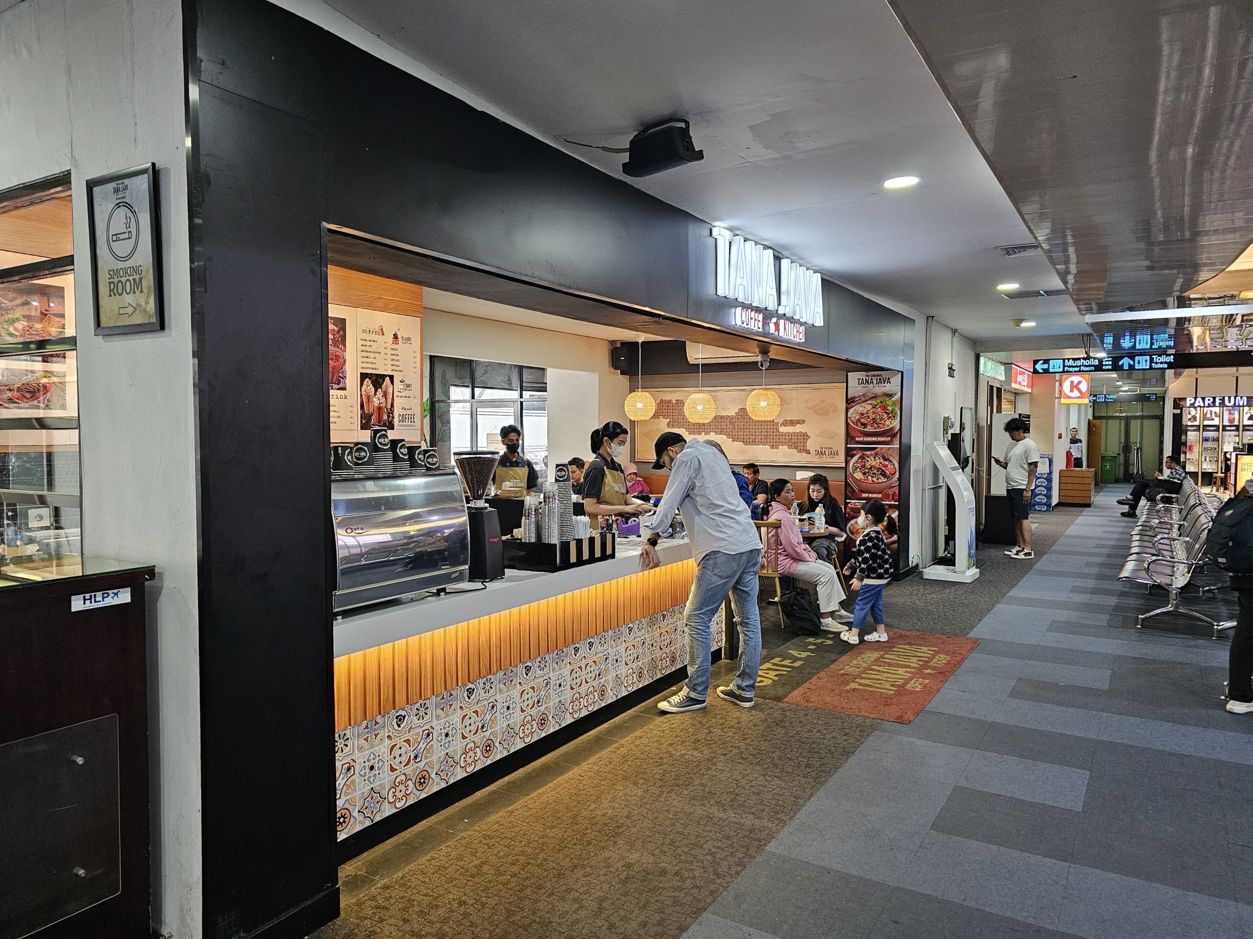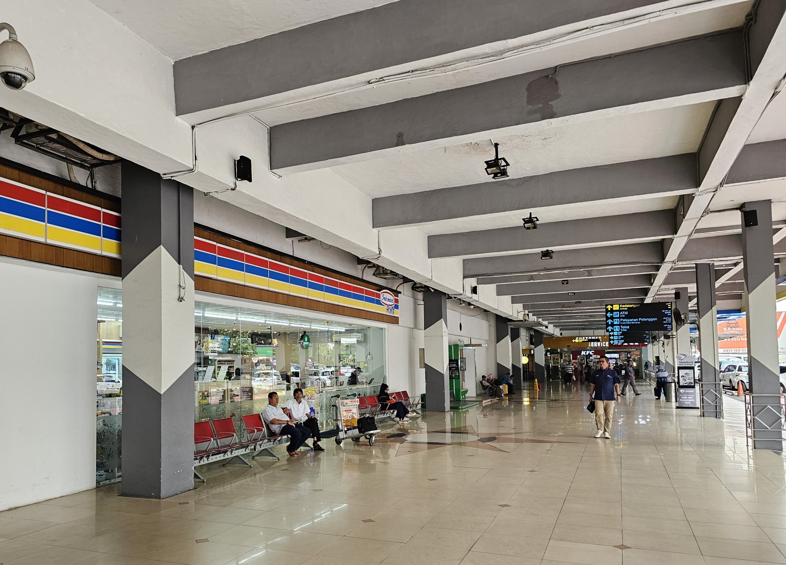 Efter att ha lämnat ankomsthallen kan du köpa enklare matvaror i butiken Indomaret och efter att ha passerat säkerhetskontrollen i avgångshallen hittar du Circle K minimarket.