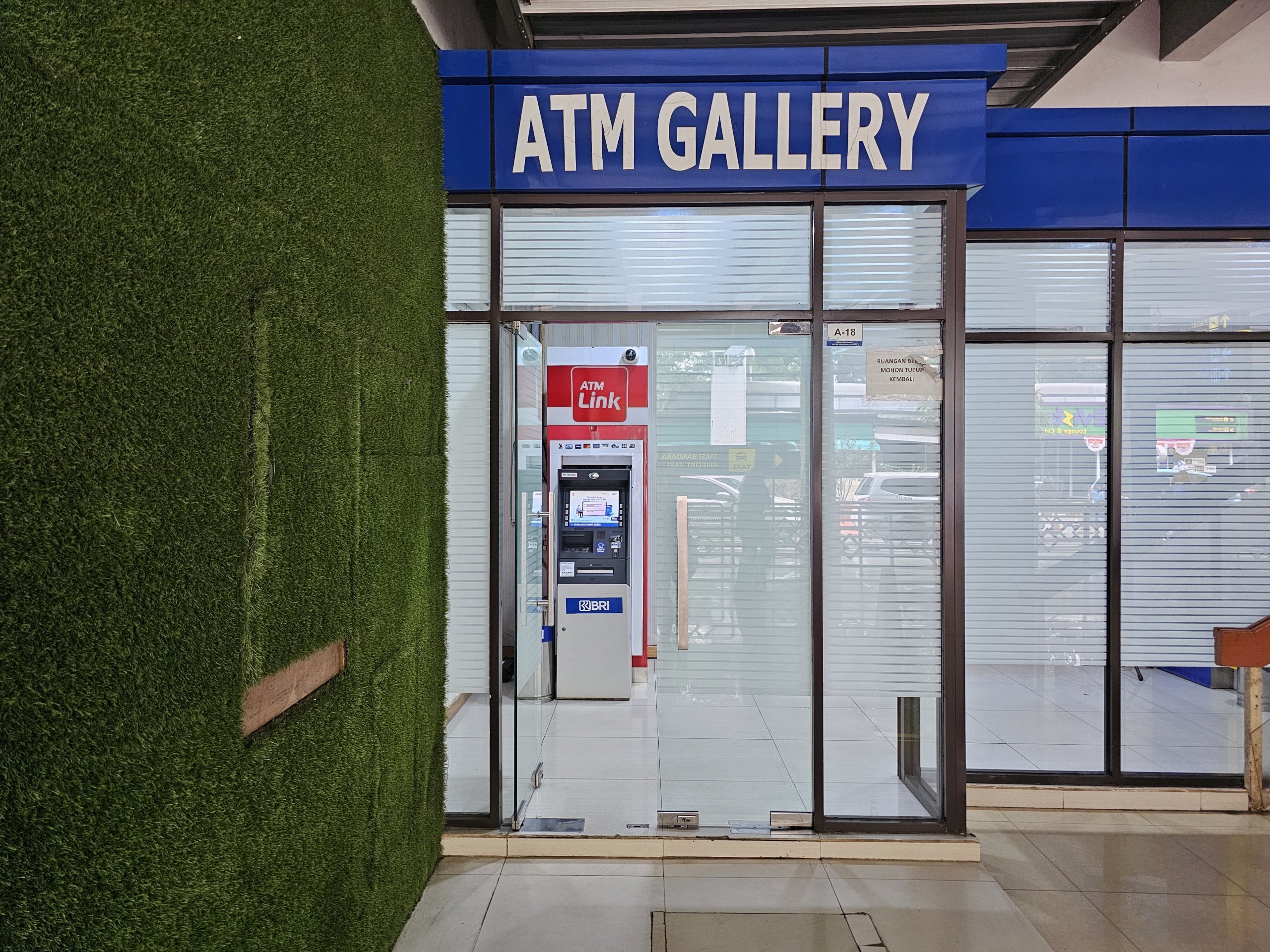 Uttagsautomater från många indonesiska banker finns efter utgången från ankomsthallen och i avgångshallen.