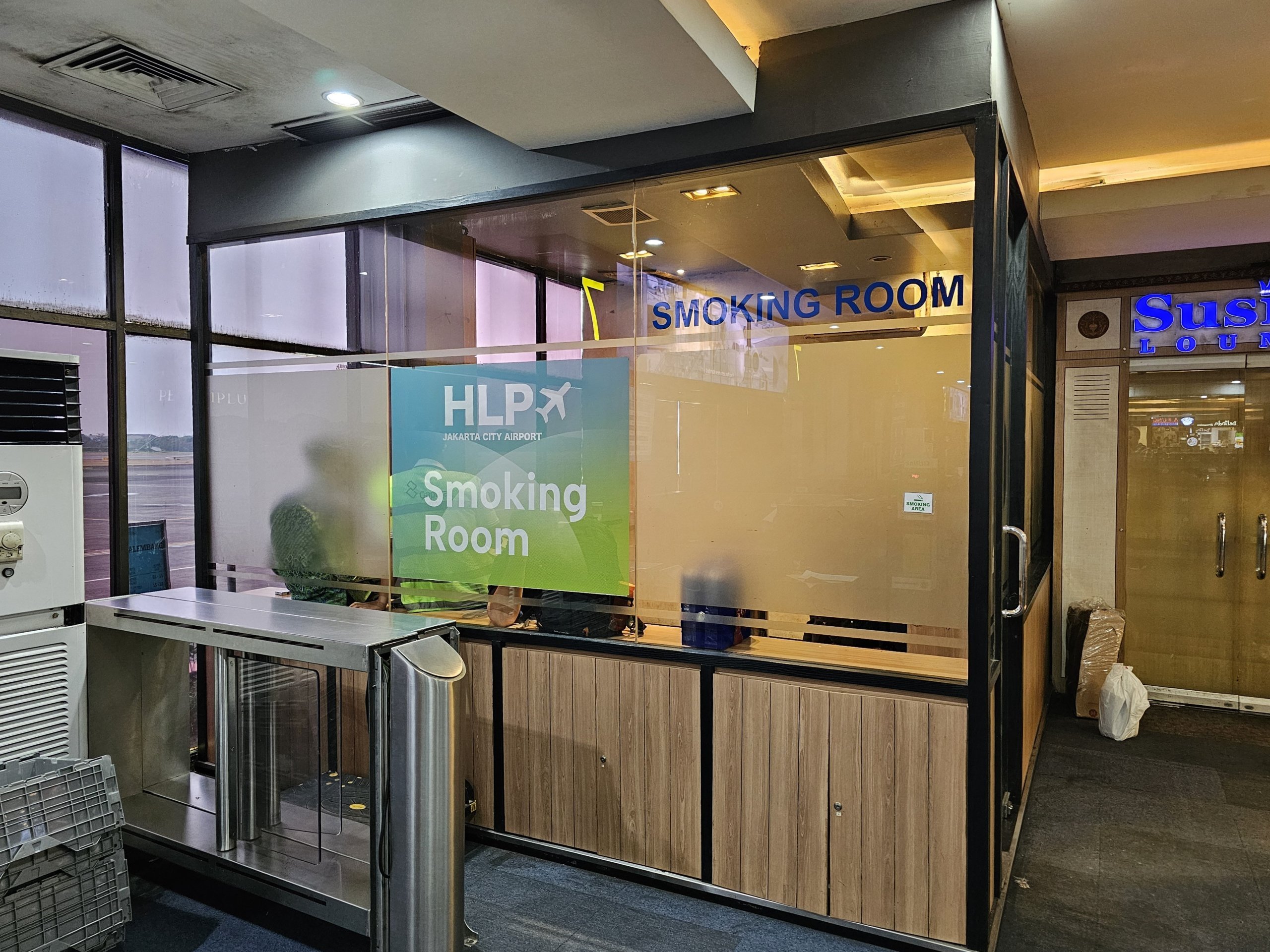 Rökrum finns tillgängliga efter att du har passerat säkerhetskontrollen.