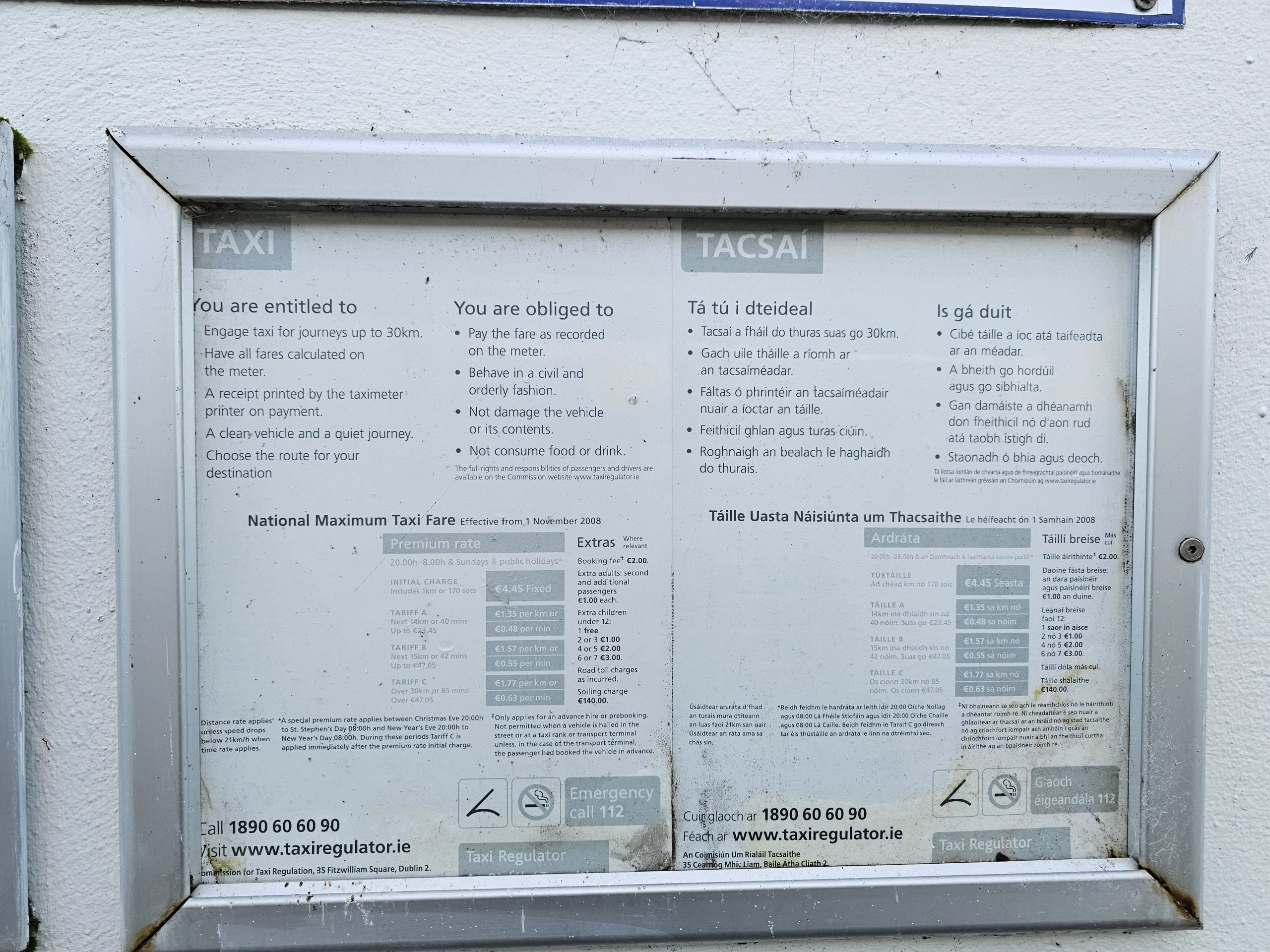 Även om officiella taxibilar måste köra med taxameter kan du stöta på oseriösa taxichaufförer som erbjuder ett fast pris på 40 euro för en resa till Killarney plus möjlighet att betala endast kontant.