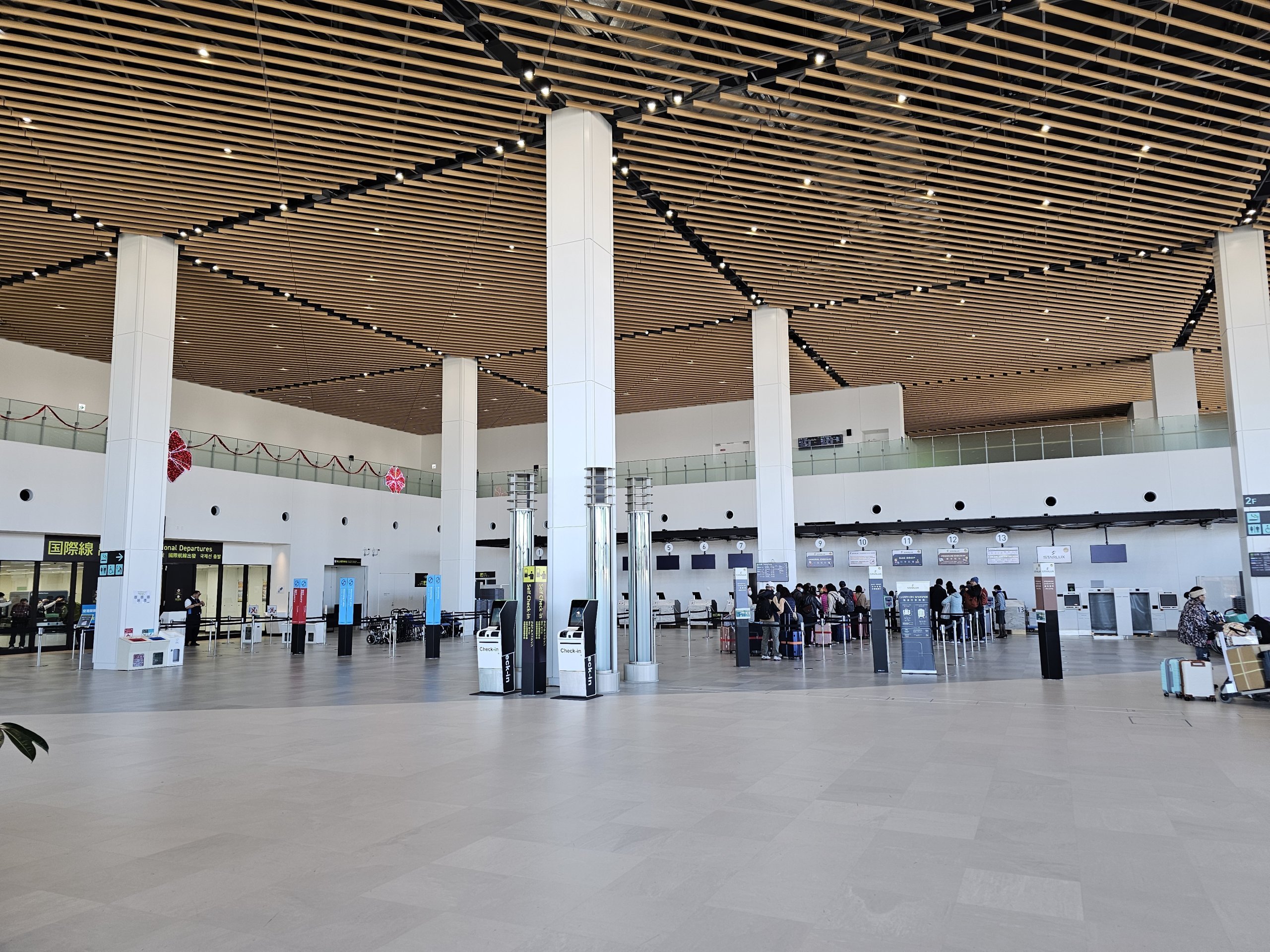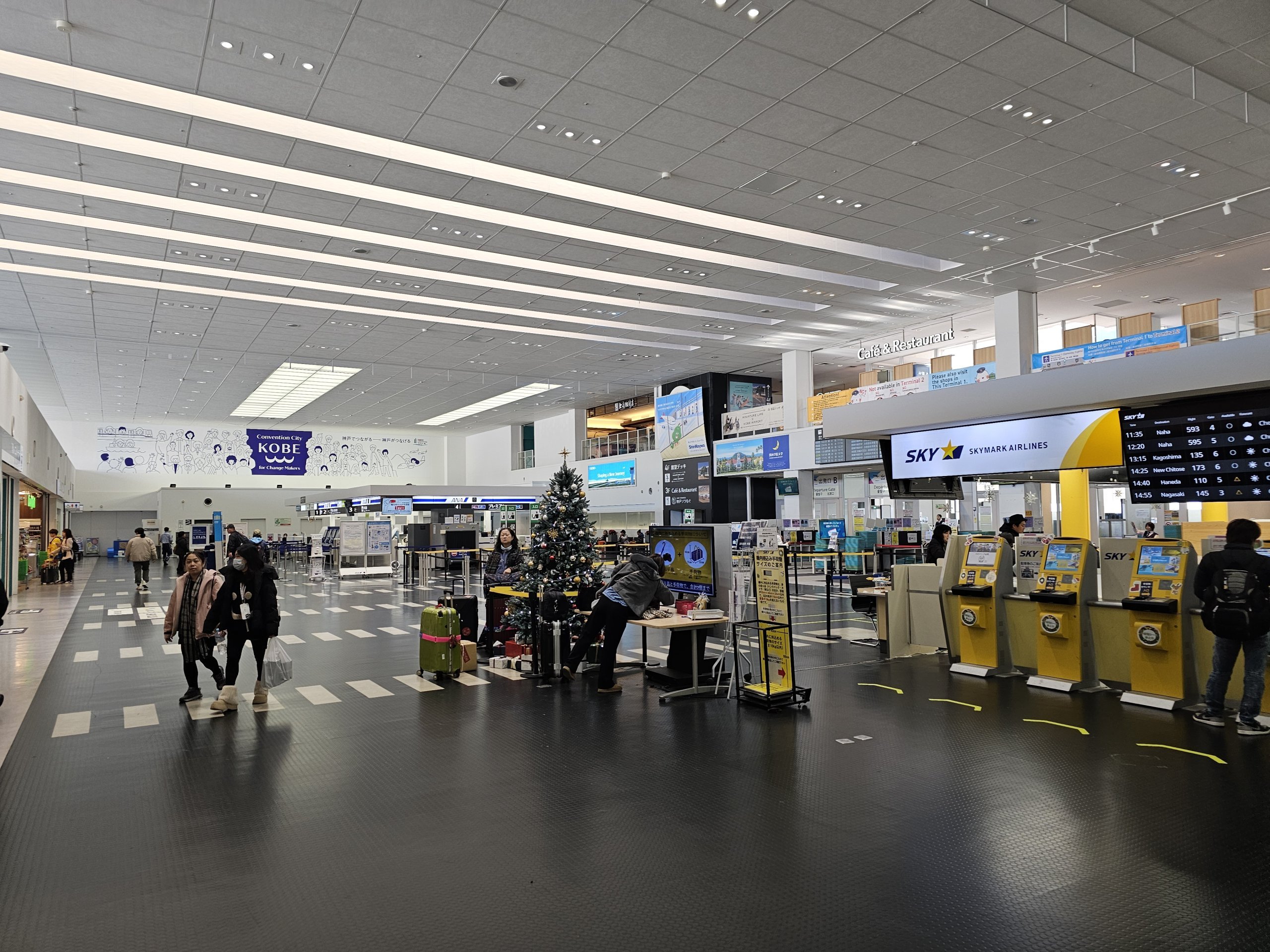 Kobe Airport har 2 små, välorganiserade terminaler i separata byggnader som ligger ca 400 meter från varandra.