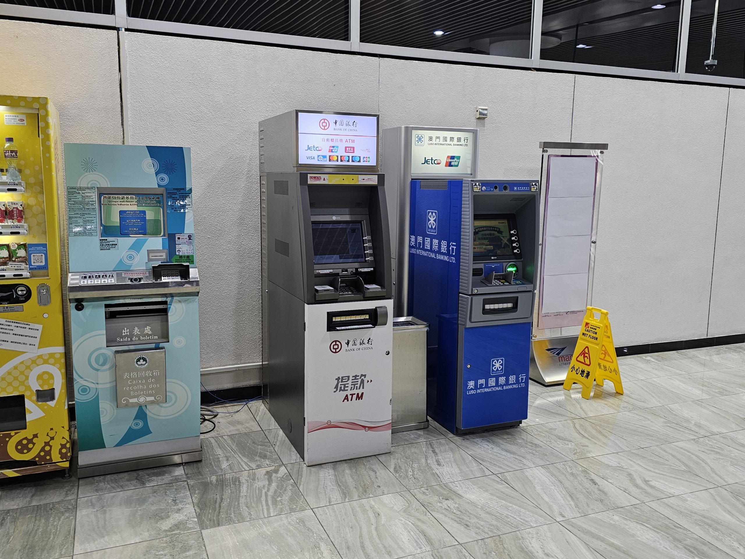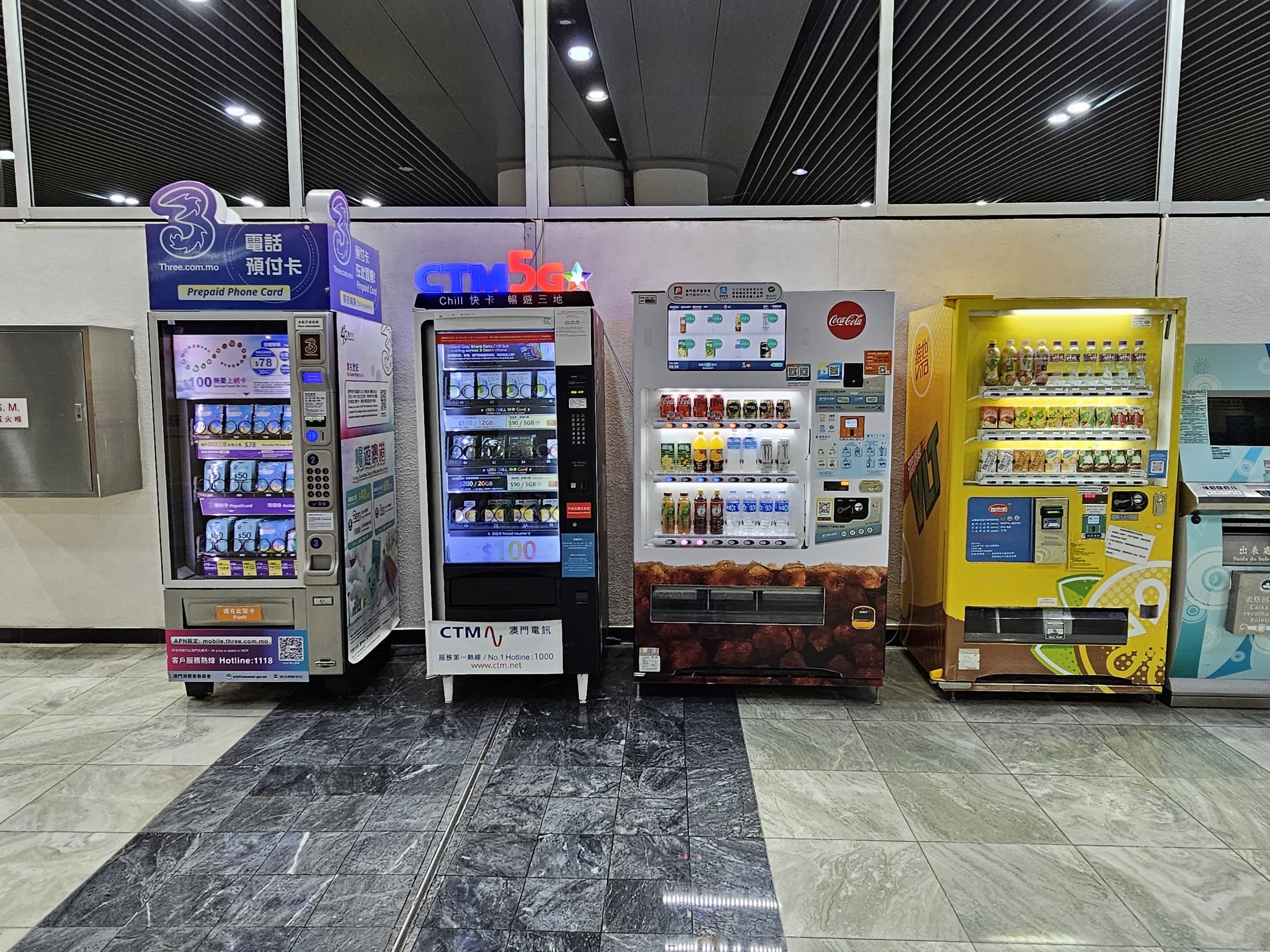 Varuautomaterna är alltid tillgängliga för betalning med kontanter eller "Macau Pass"-kortet. De accepterar inte kreditkort eller varuautomater.