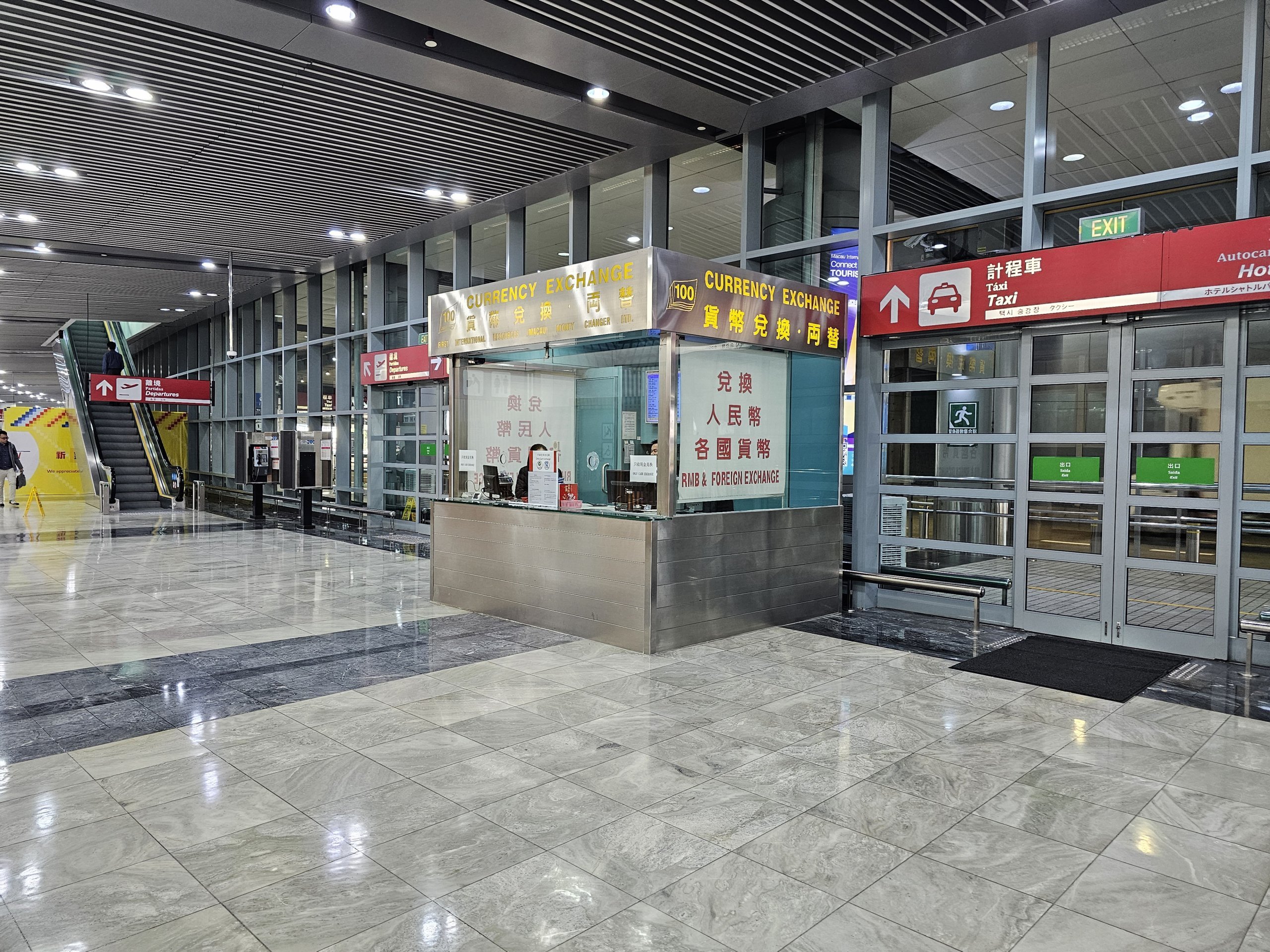 I det allmänna området i ankomsthallen hittar du flera valutaväxlingskontor med hyfsade priser.