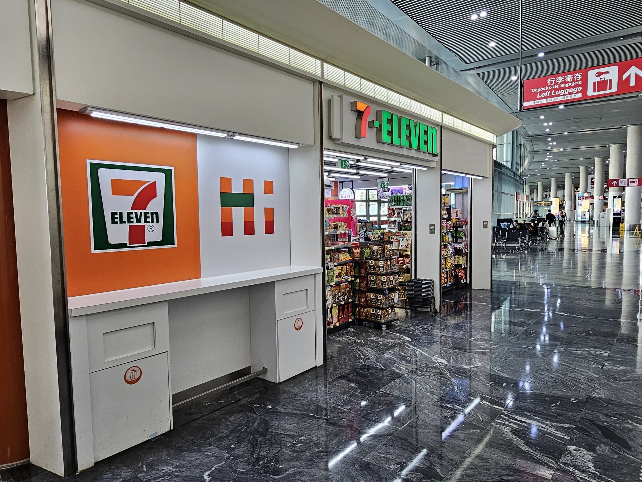 På avgångsplanet finns ett bagagerum som är öppet 24 timmar om dygnet.