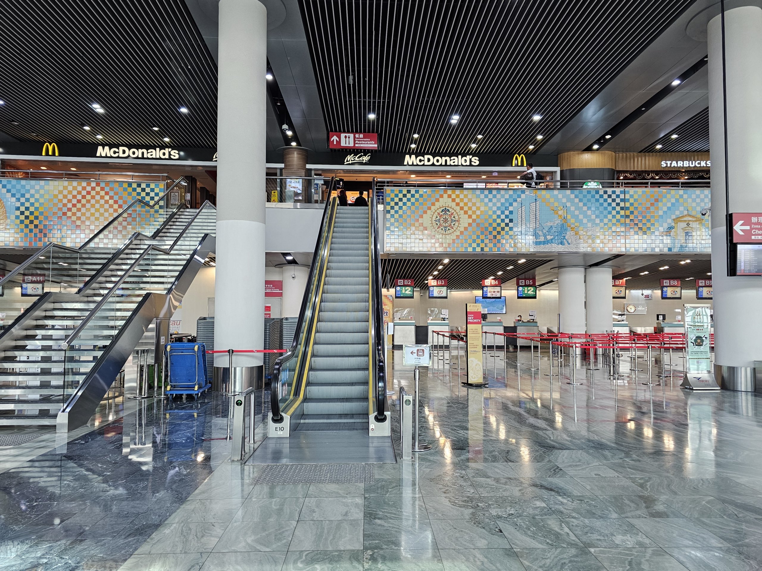 På 3:e våningen i det allmänna området, ovanför incheckningsdiskarna, finns McDonald's och MX snabbmatsrestauranger samt ett Starbucks kafé. Det är öppet från 07:00 till 21:00.