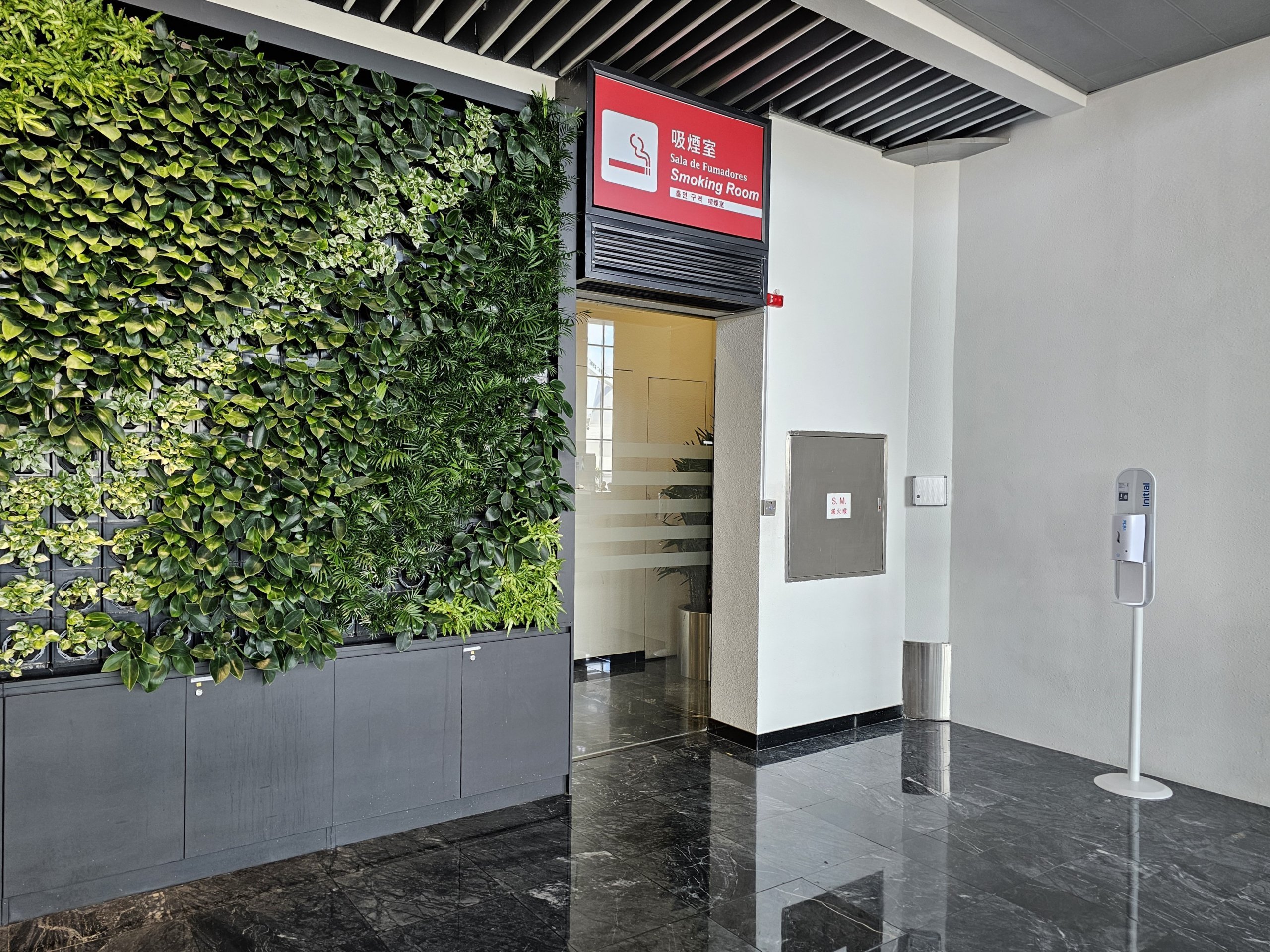 Ett ventilerat rökrum finns tillgängligt i transitområdet.
