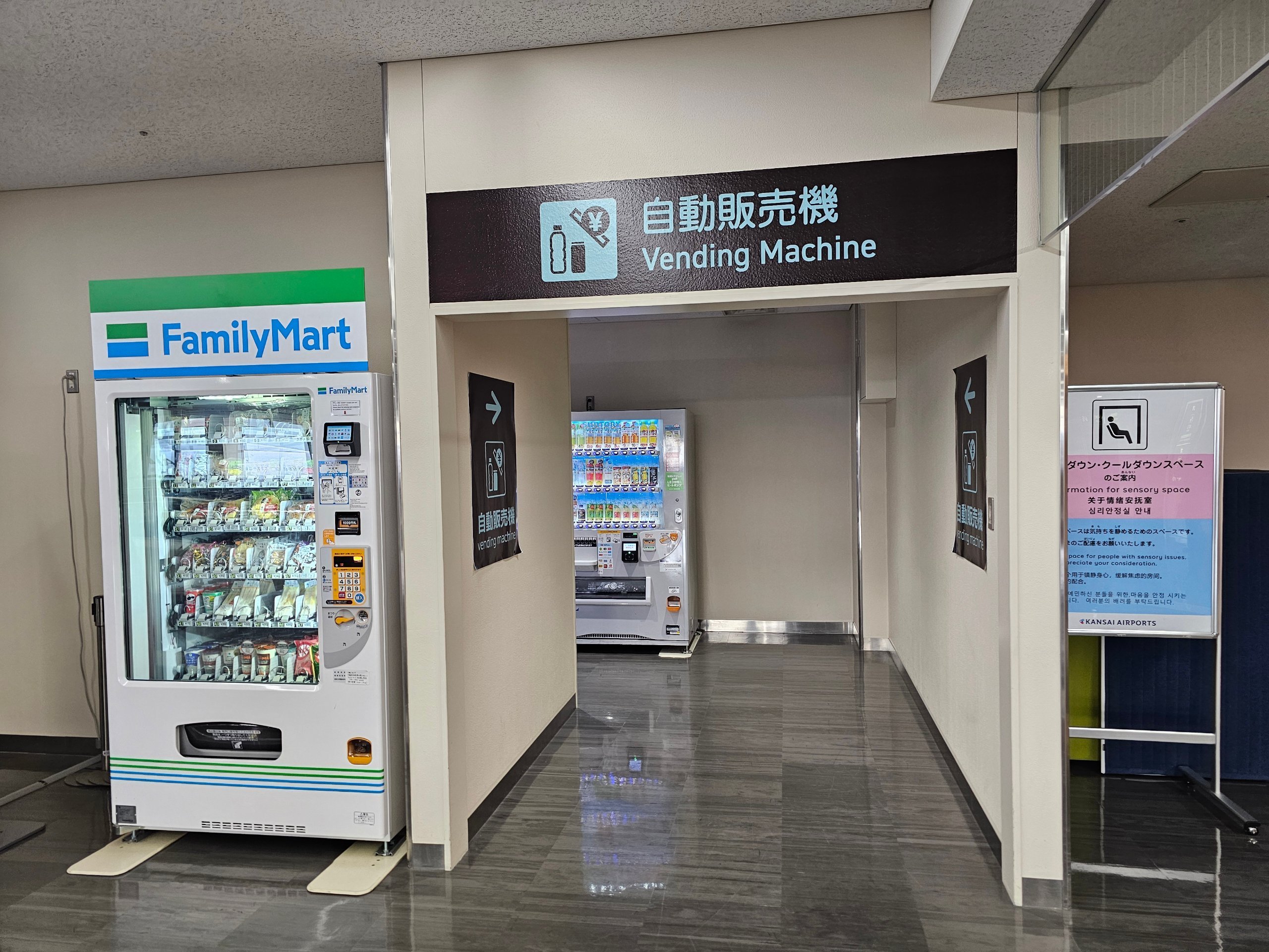 Varuautomater som säljer drycker, godis och smörgåsar finns på flera ställen i de allmänna utrymmena och transitområdena.