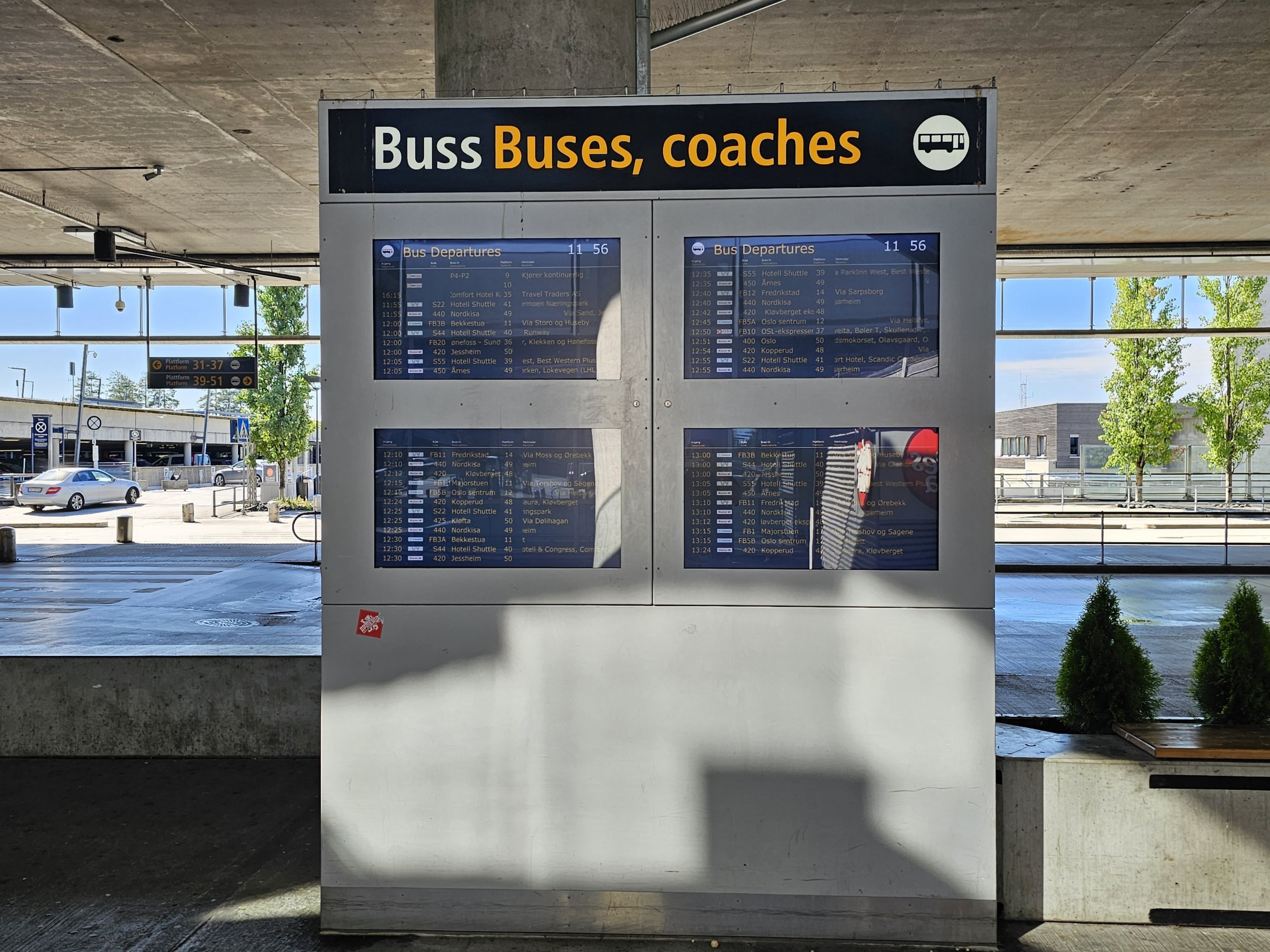 Bussarna stannar direkt framför terminalen och du hittar den specifika plattformen på den elektroniska tavlan.