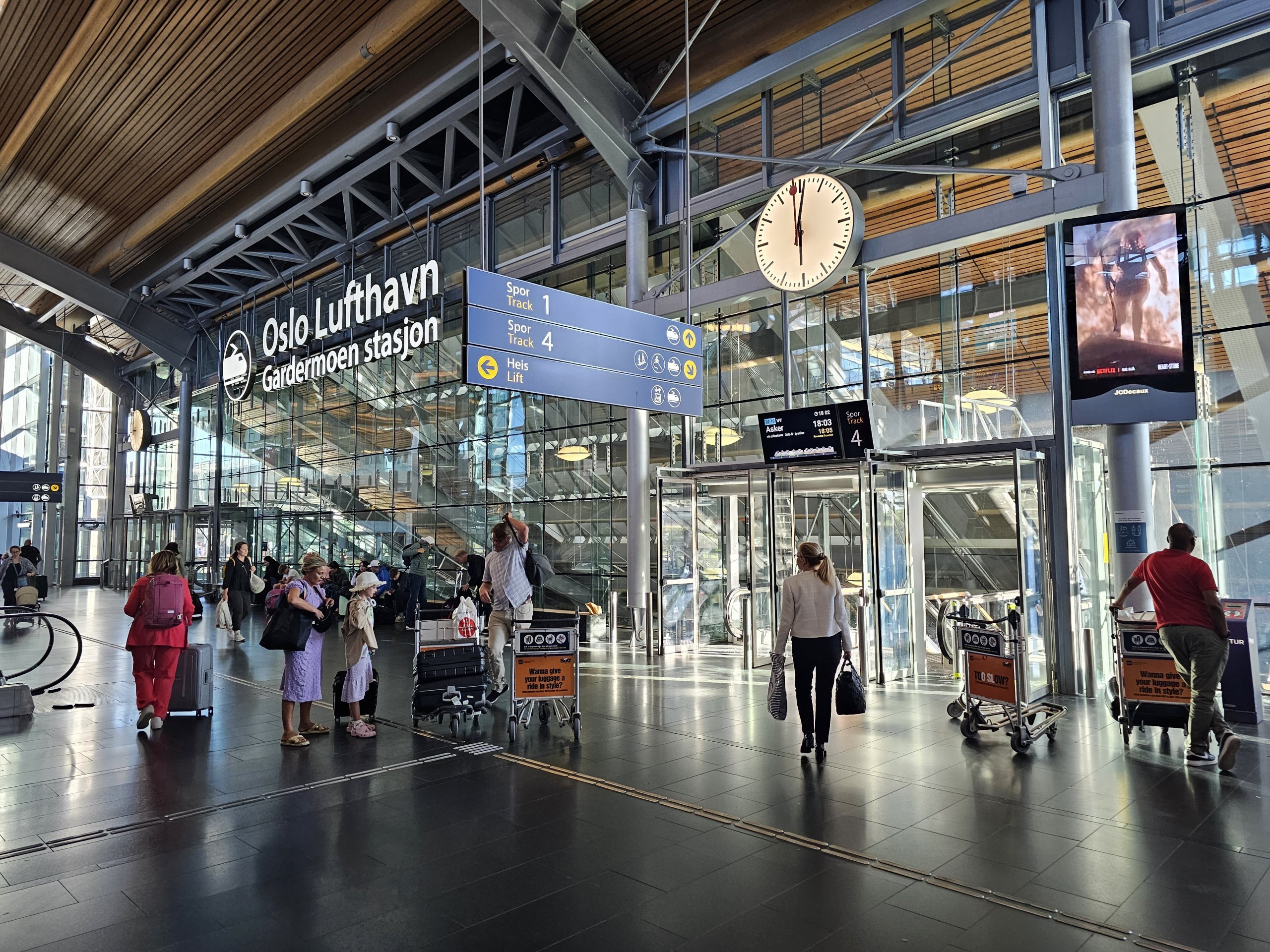 På flygplatsens station tar du specialkorridoren "Flytoget" till plattform 2 eller 3 för din resa till Oslo.