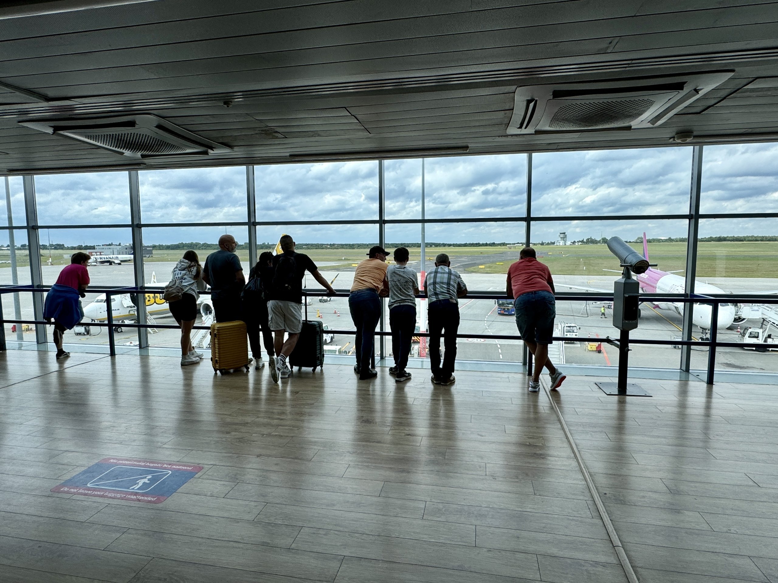 Njut av utsikten över landningsbanan och titta på trafiken på asfalten före avgång. Observationsdäcket ligger på första våningen i terminalens avgångsavdelning.