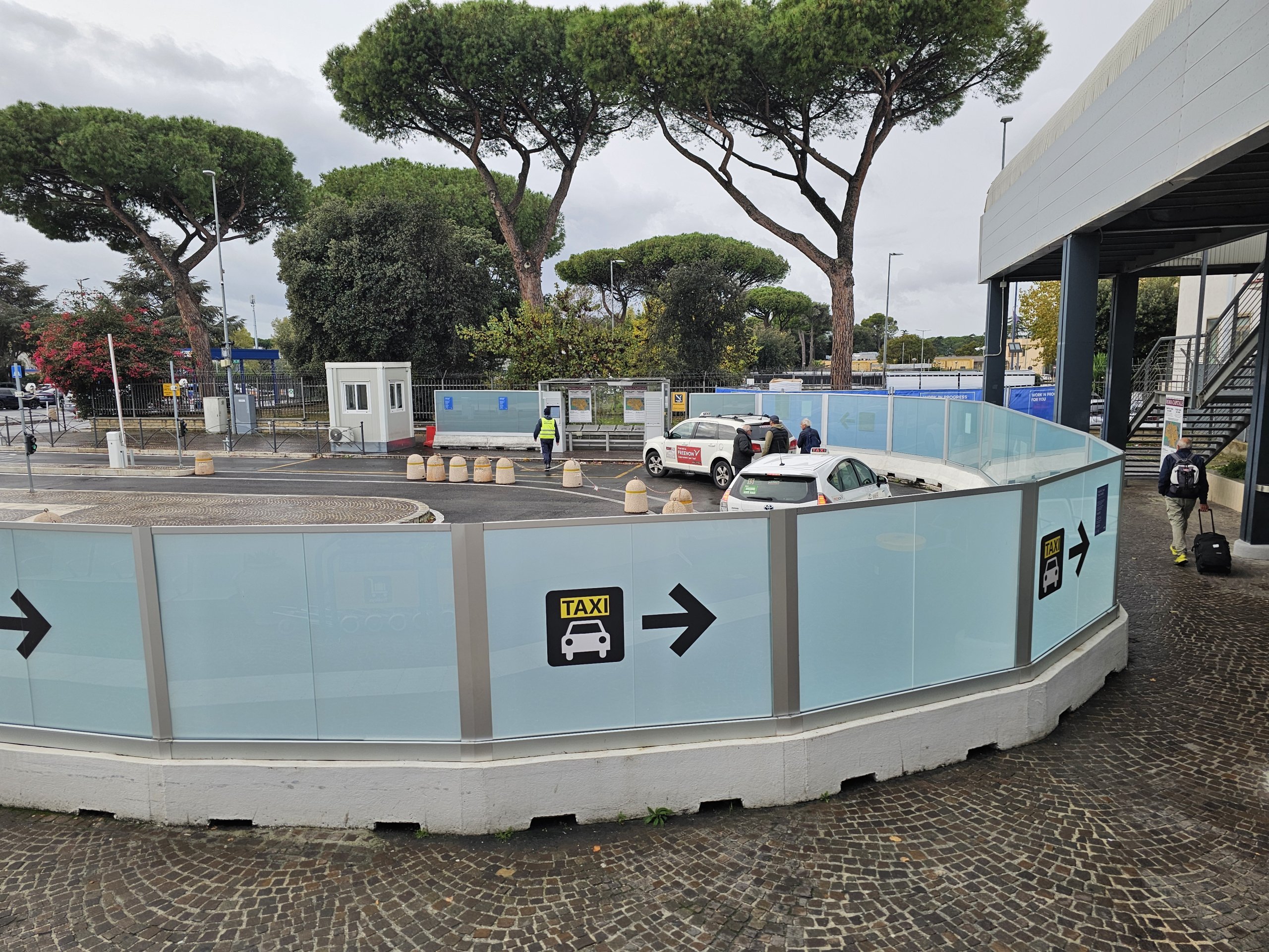 Vanliga taxibilar och appar kostar ungefär lika mycket för att ta sig in till centrala Rom. 40 euro.