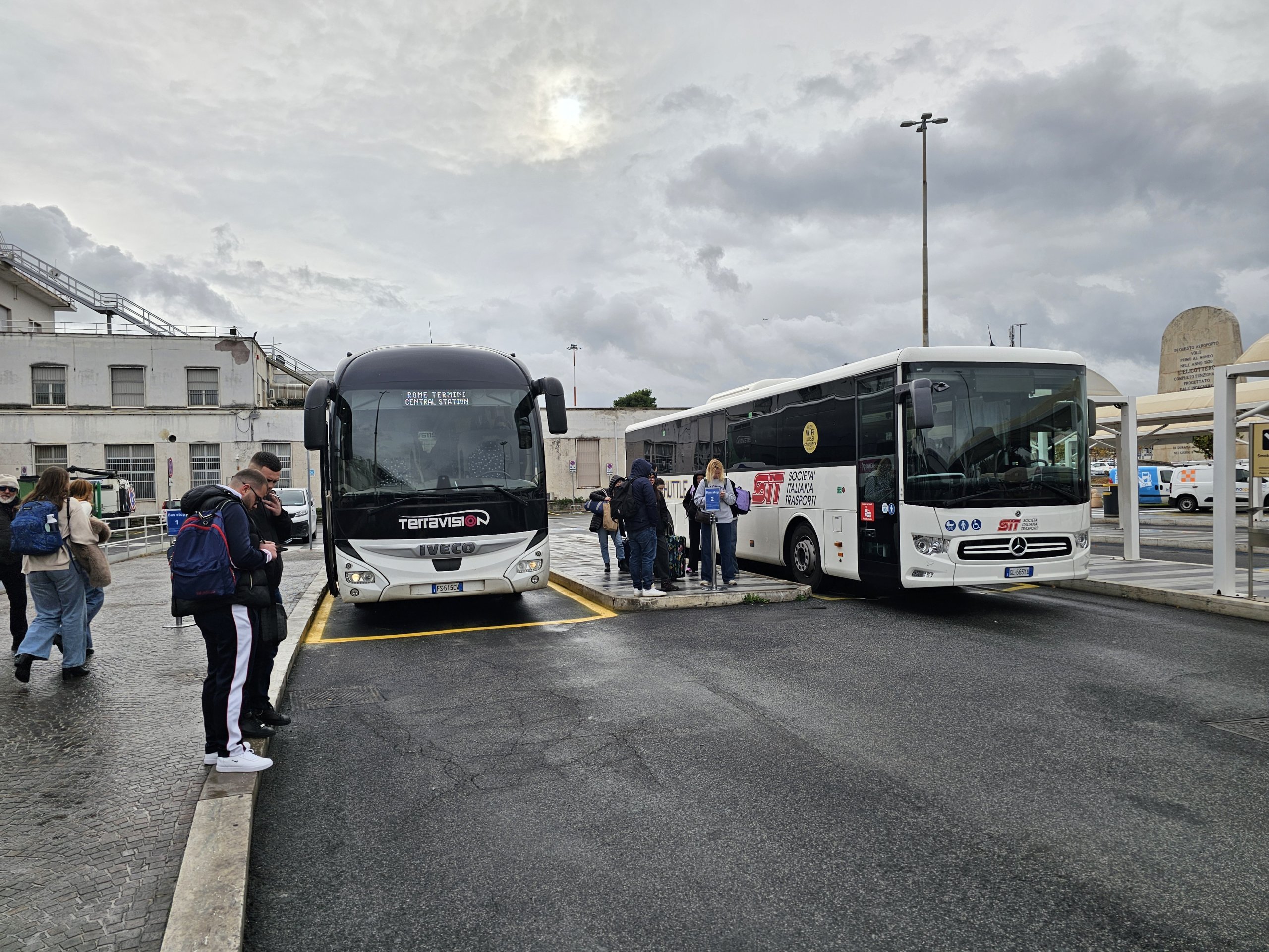 Vid Termini station stannar alla bolag på Via Giovanni Giolitti (samma hållplatser som mot Fiumicino flygplats, så se till att du kliver på rätt buss).