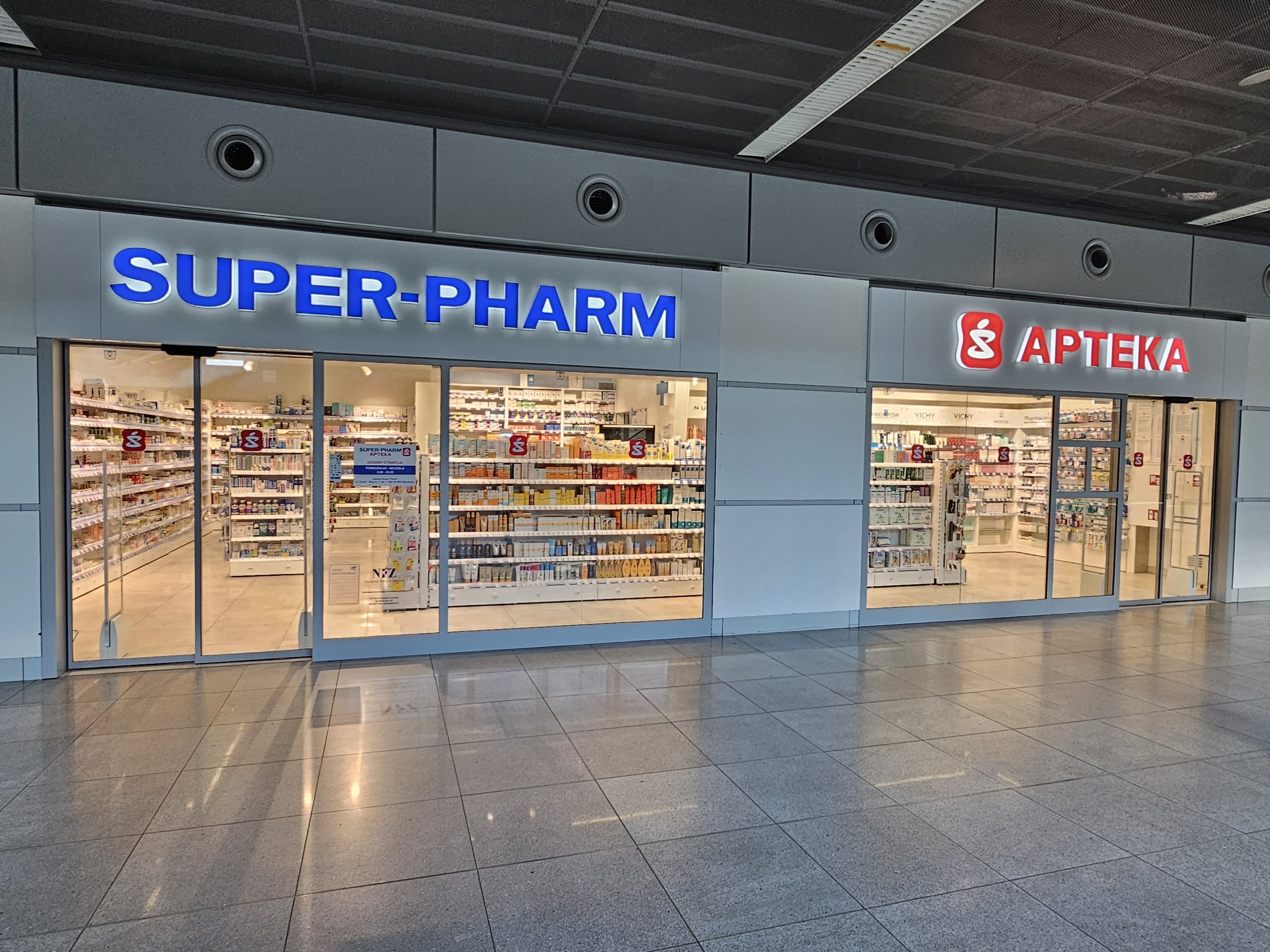 Apoteket finns i ankomsthallen i det allmänna området och är öppet 7:00-21:00.