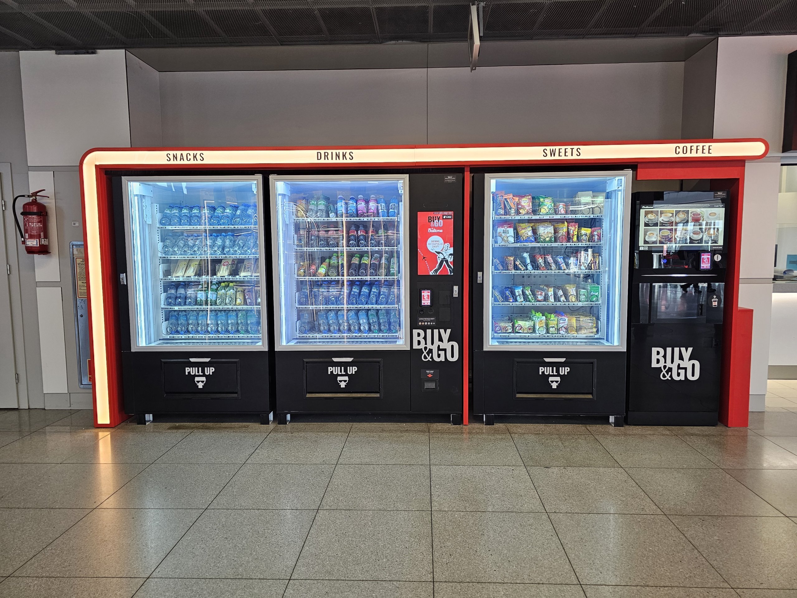 Det finns många varuautomater i både det allmänna området och transitområdet som erbjuder drycker, godis eller smörgåsar för snabba förfriskningar.
