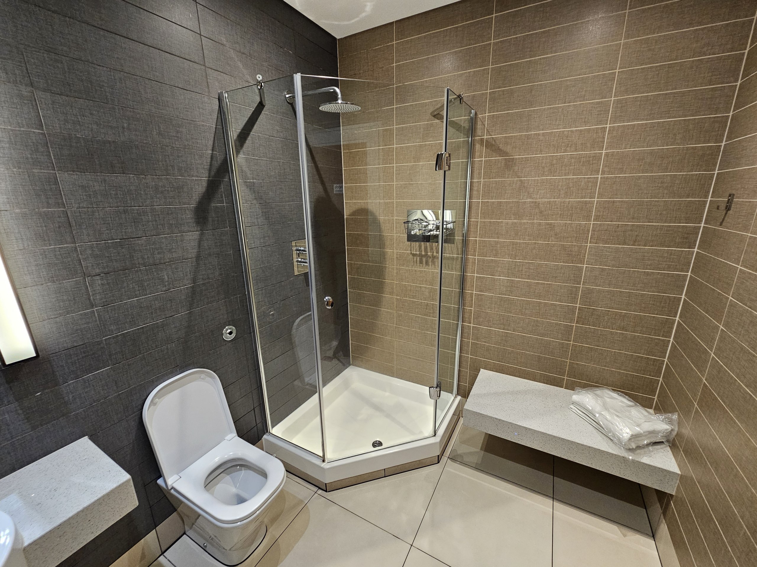 Du hittar duscharna precis vid ingången till loungen - de är mycket rymliga och rena, och du får två handdukar gratis.