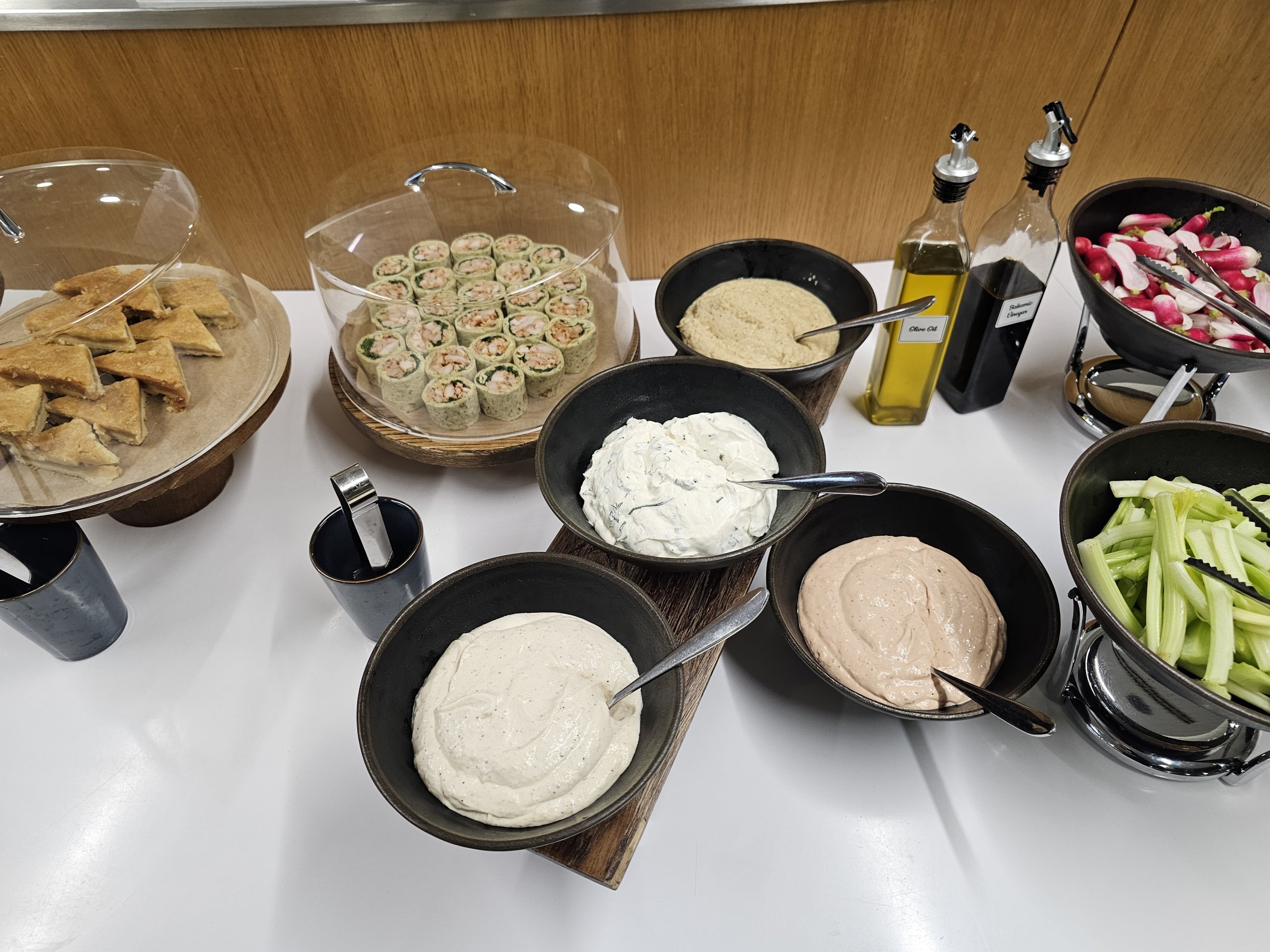 Det finns också några skålar med grönsaker, vilket jag uppskattar. Bredvid den kan du välja mellan 3 sorters pålägg och bakverk. Å andra sidan saknas det nästan helt frukt.