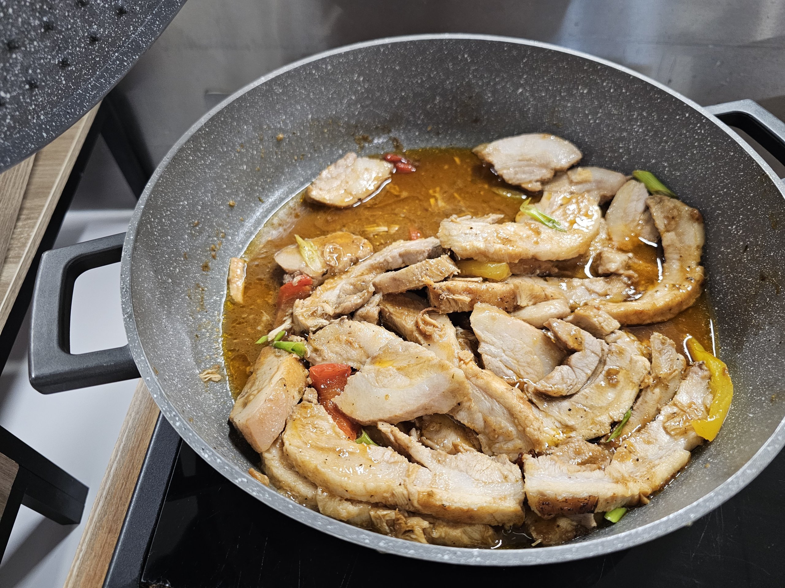 Lunchmenyn den dag vi besökte hotellet bestod av kokt potatis, pasta med svamp och mycket fett fläskkött.