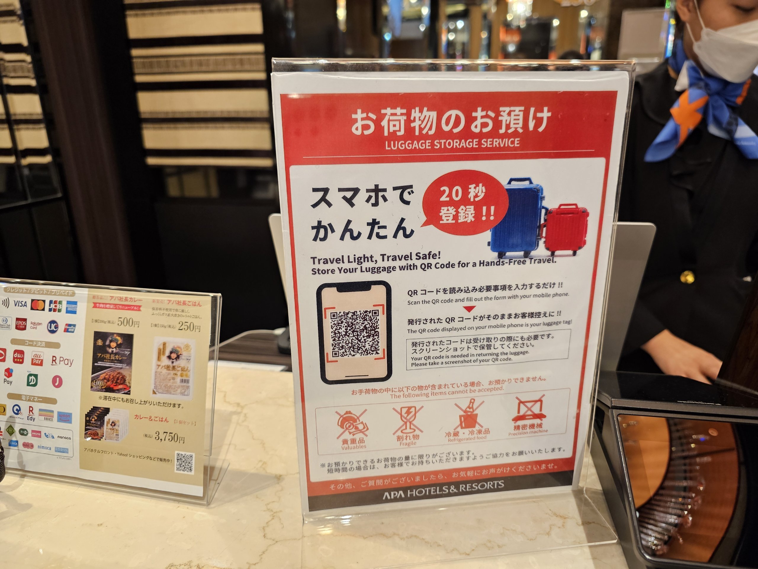 För bagageförvaringen måste jag skanna QR-koden, fylla i mitt för- och efternamn och visa QR-koden igen i receptionen när jag hämtar ut det.