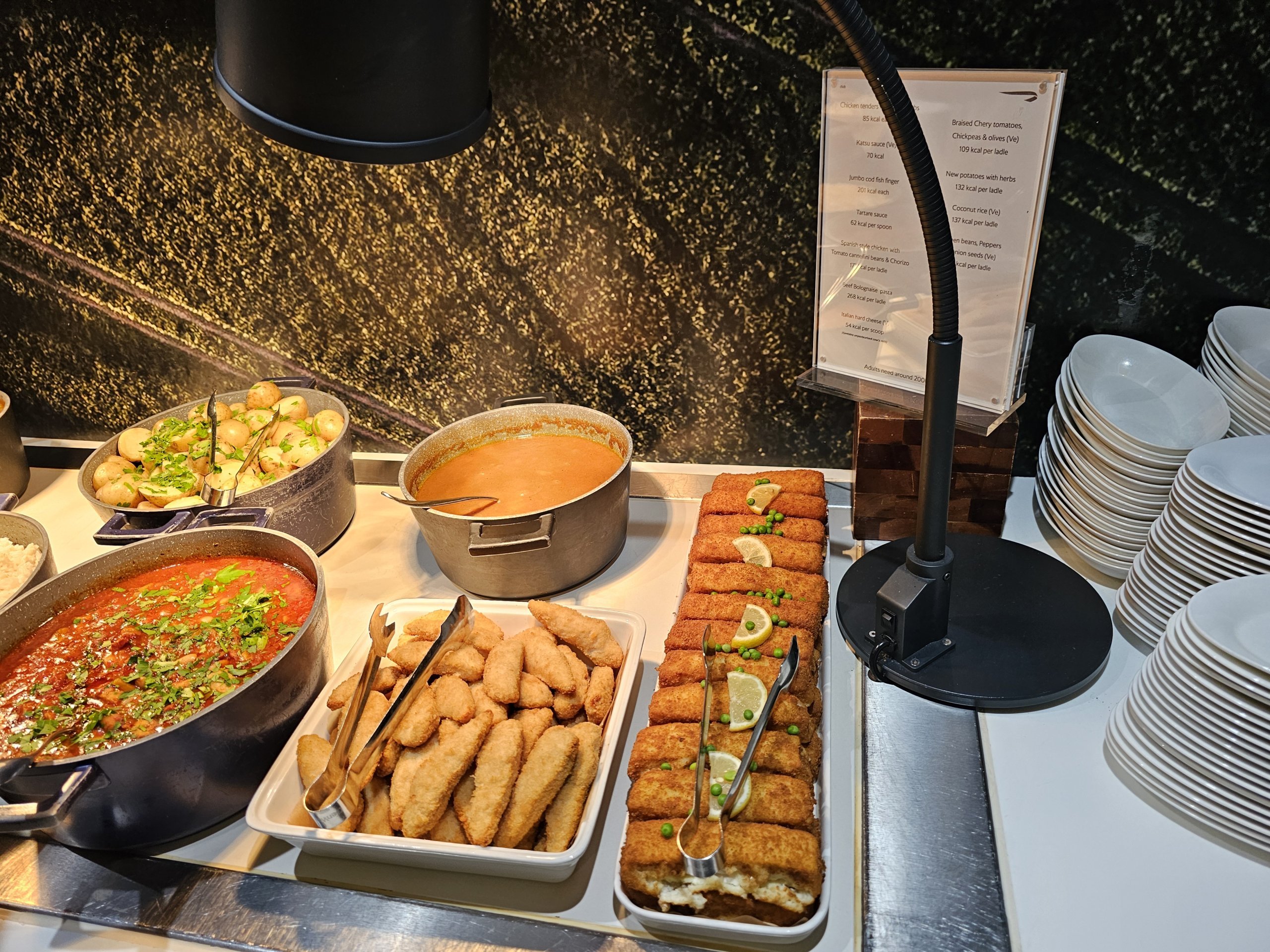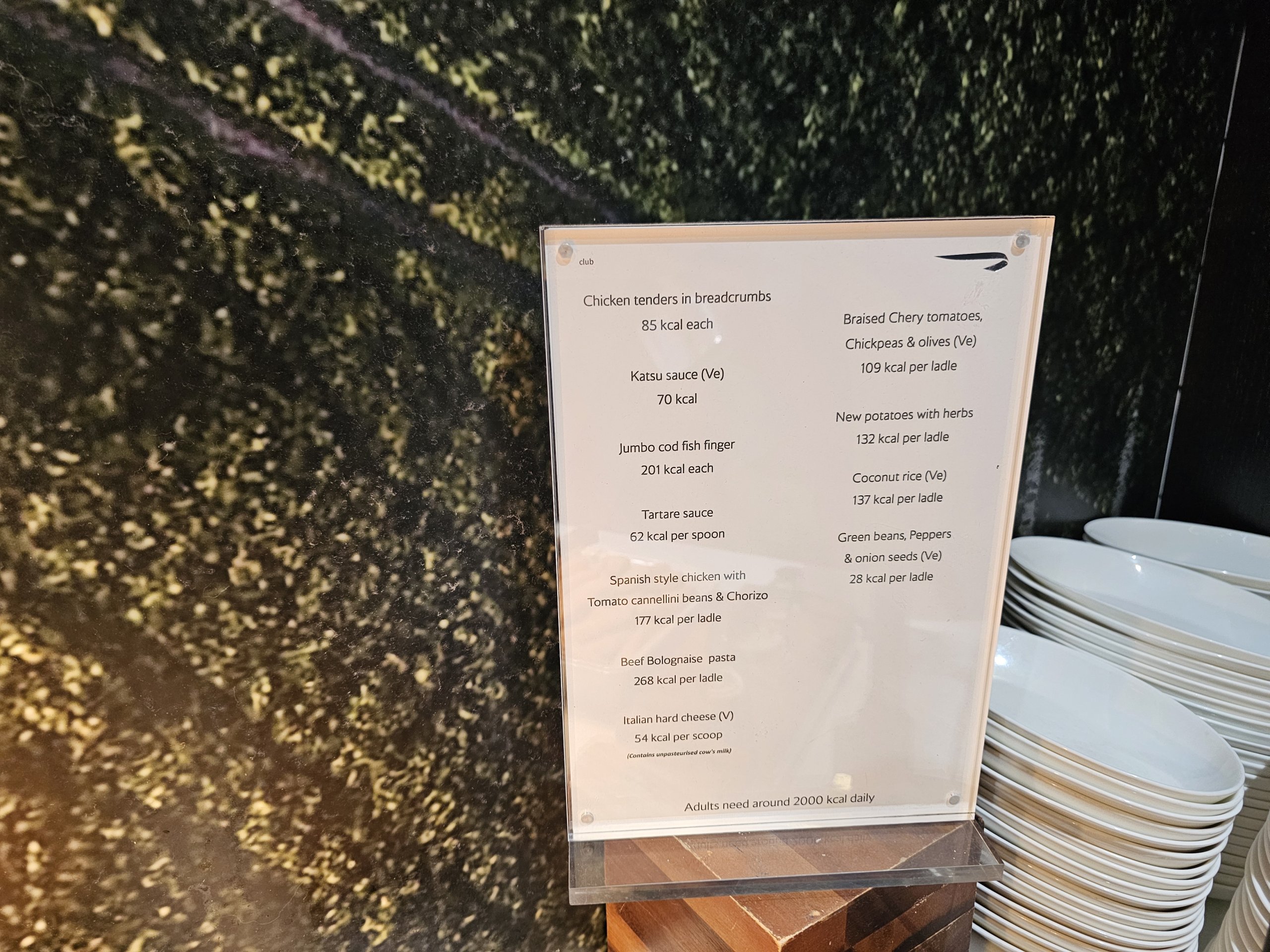 Positivt är att det finns en skylt med kaloriinnehållet i all mat som erbjuds.