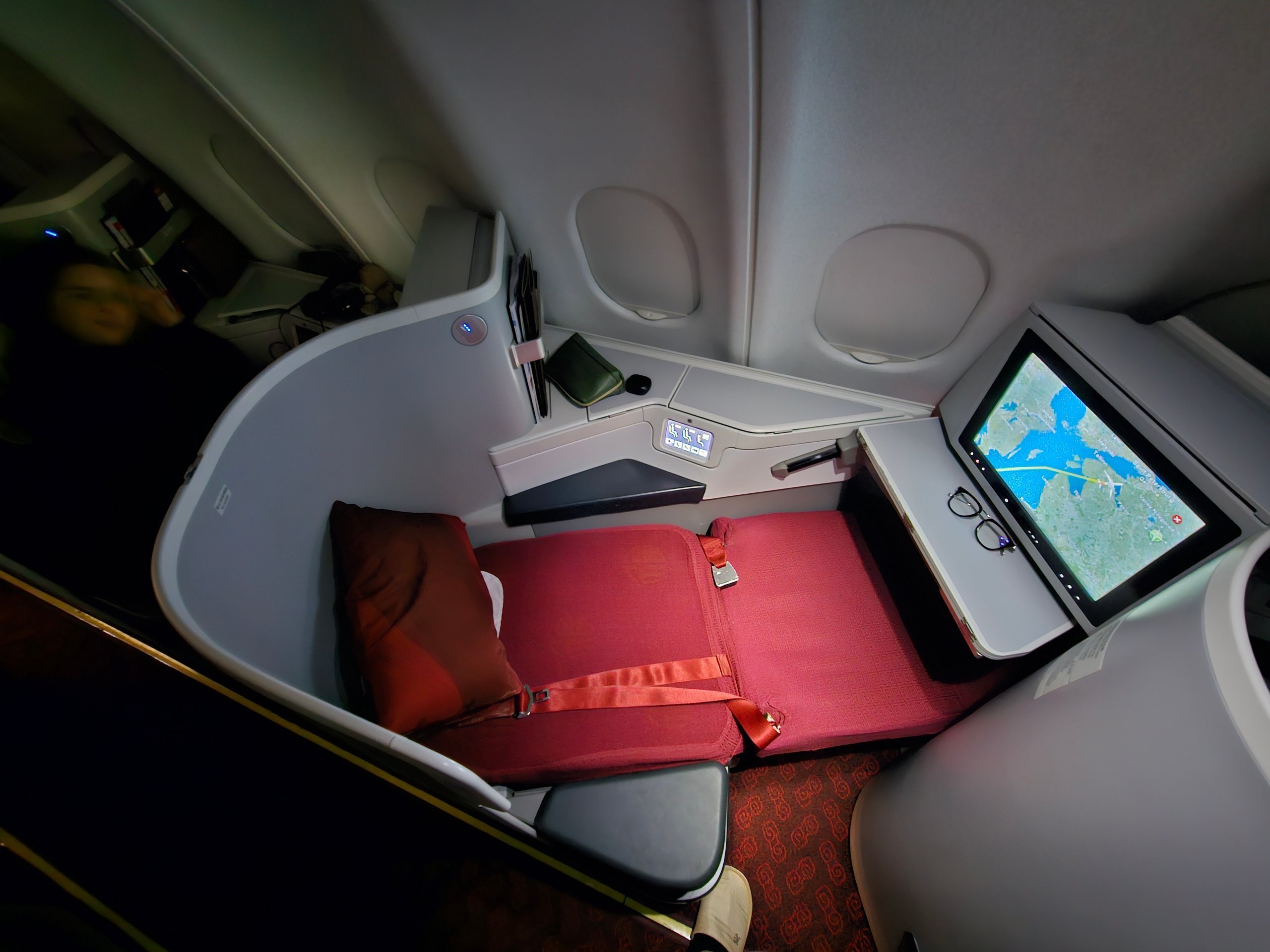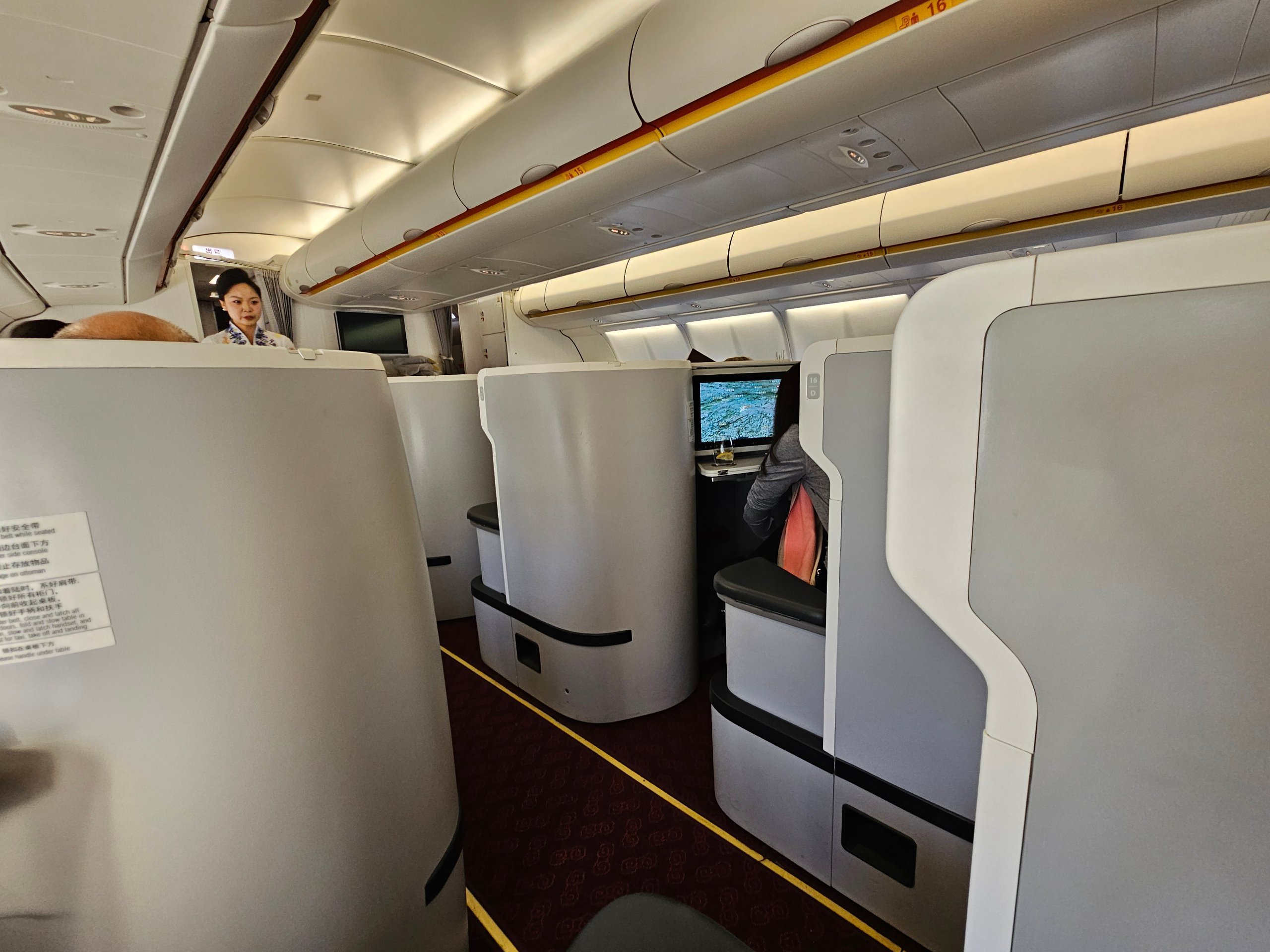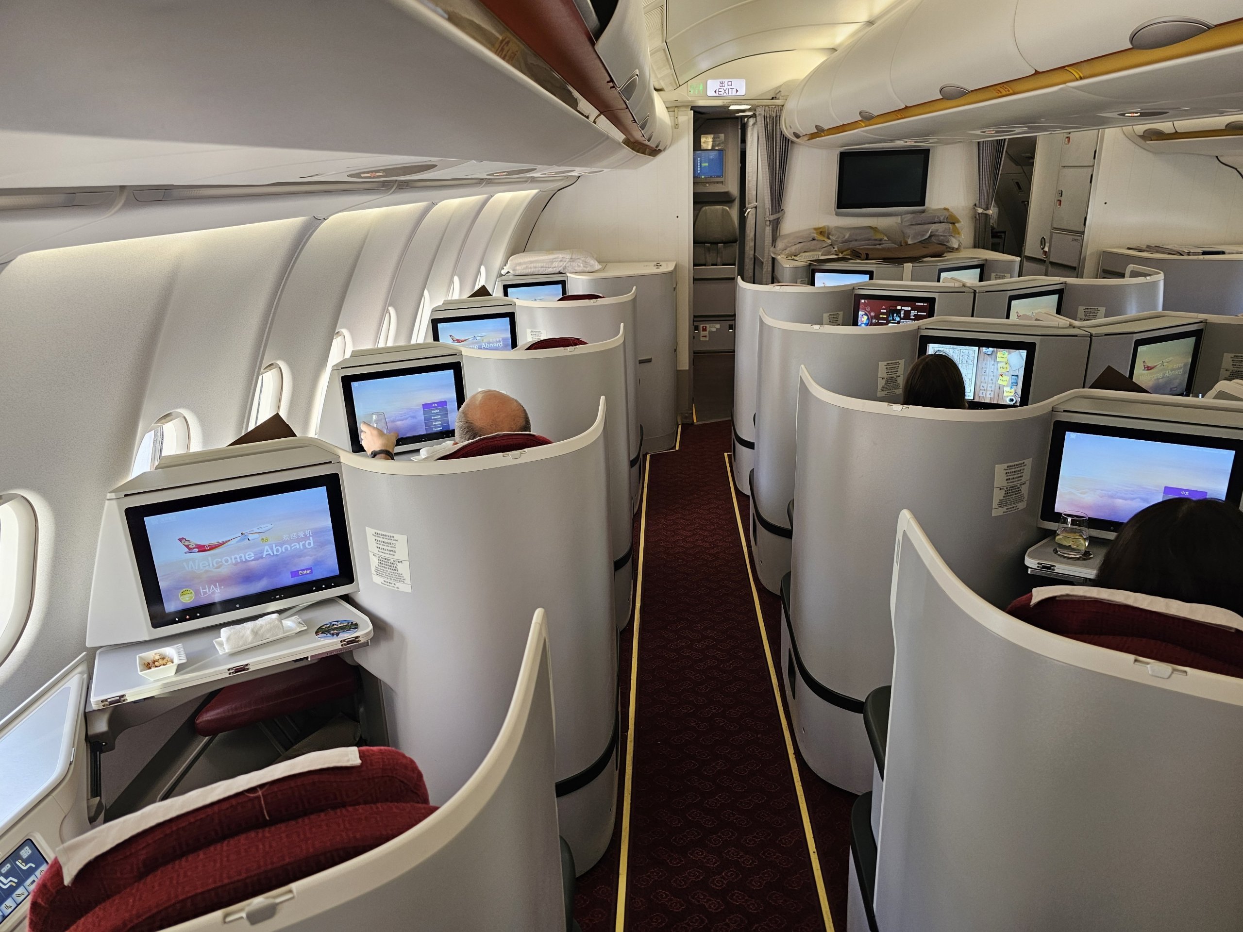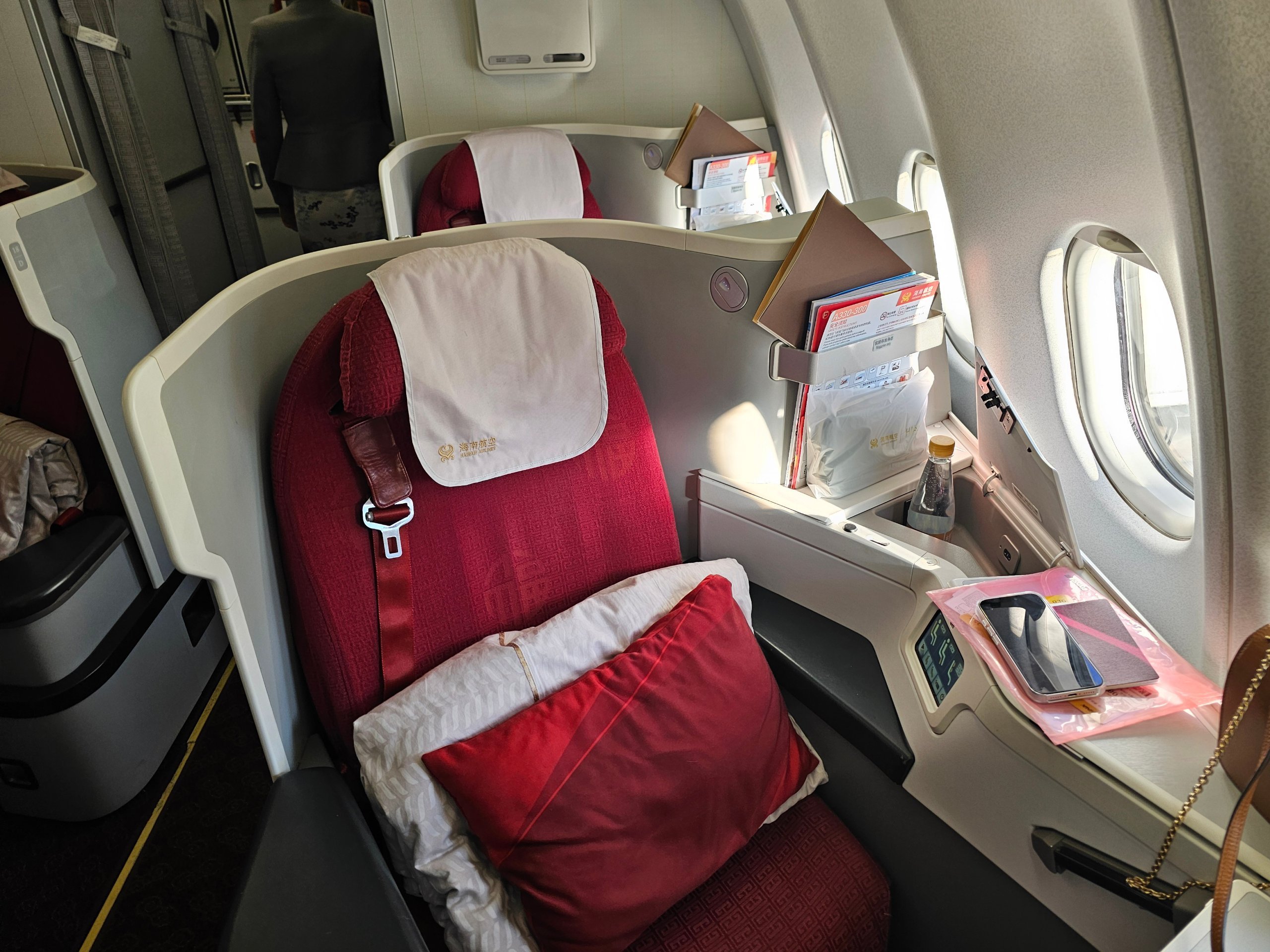 Hainan Airlines Airbus A330-300 erbjuder god avskildhet och en helt platt säng i business class. Det är det grundläggande som gör skillnaden på en 10-timmarsflygning.