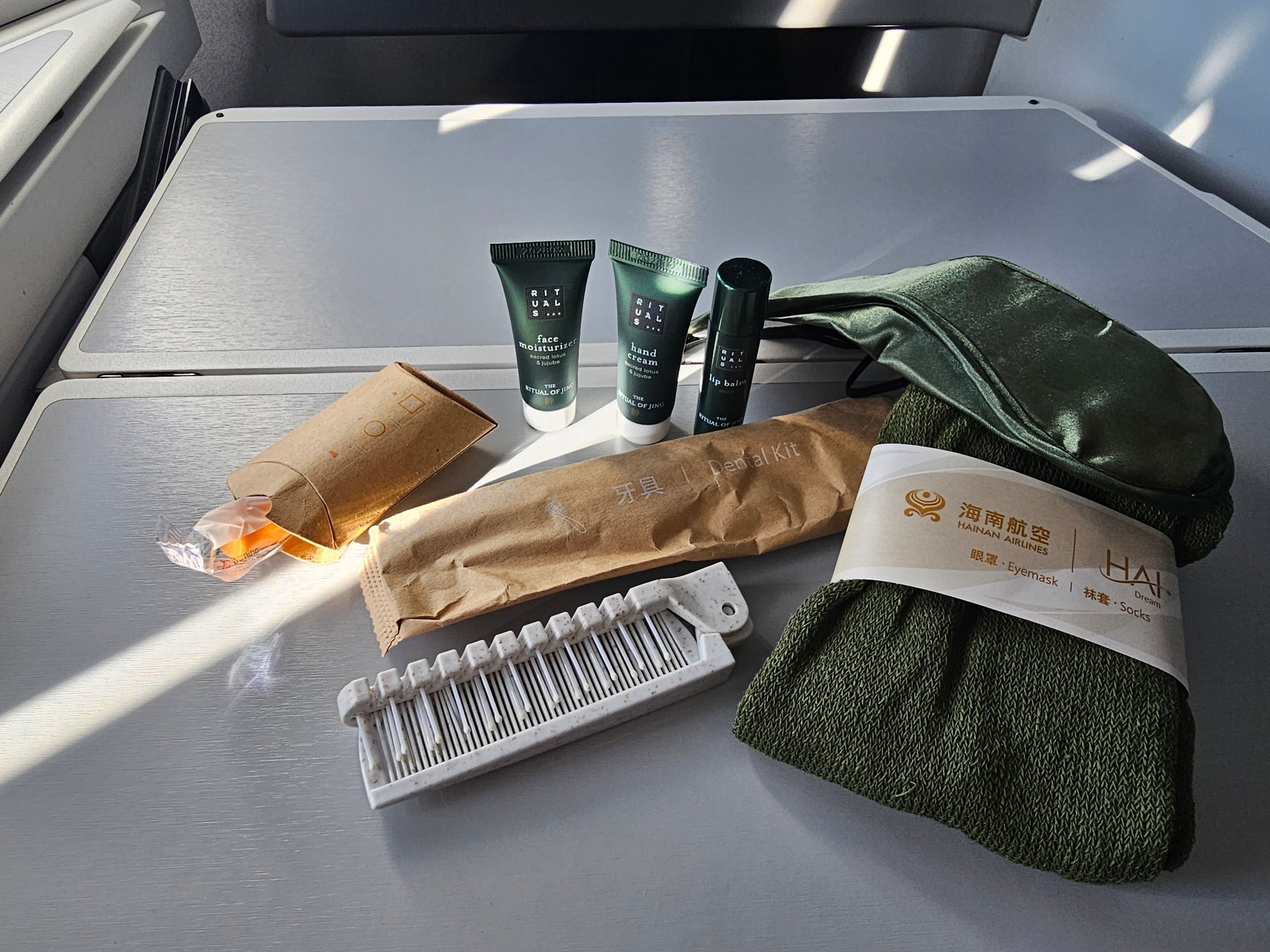 Amenity kit i Hainan Airlines business class ser solid ut vid första anblicken, men utan mycket originalitet.