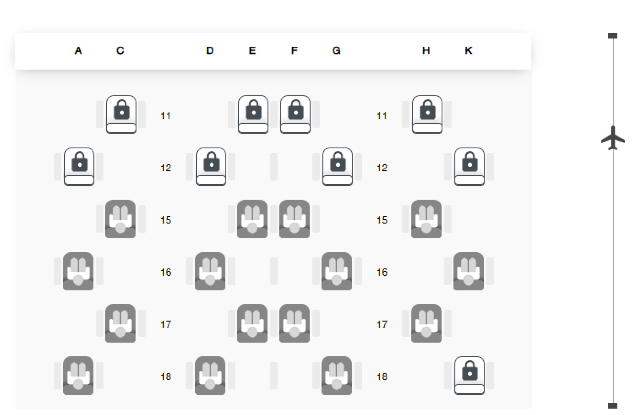 Men om du reser som ett par och hoppas att ett par säten i mitten ska ge er avskildhet tillsammans, kommer du att bli besviken. I praktiken kommer ni inte att se varandra överhuvudtaget.