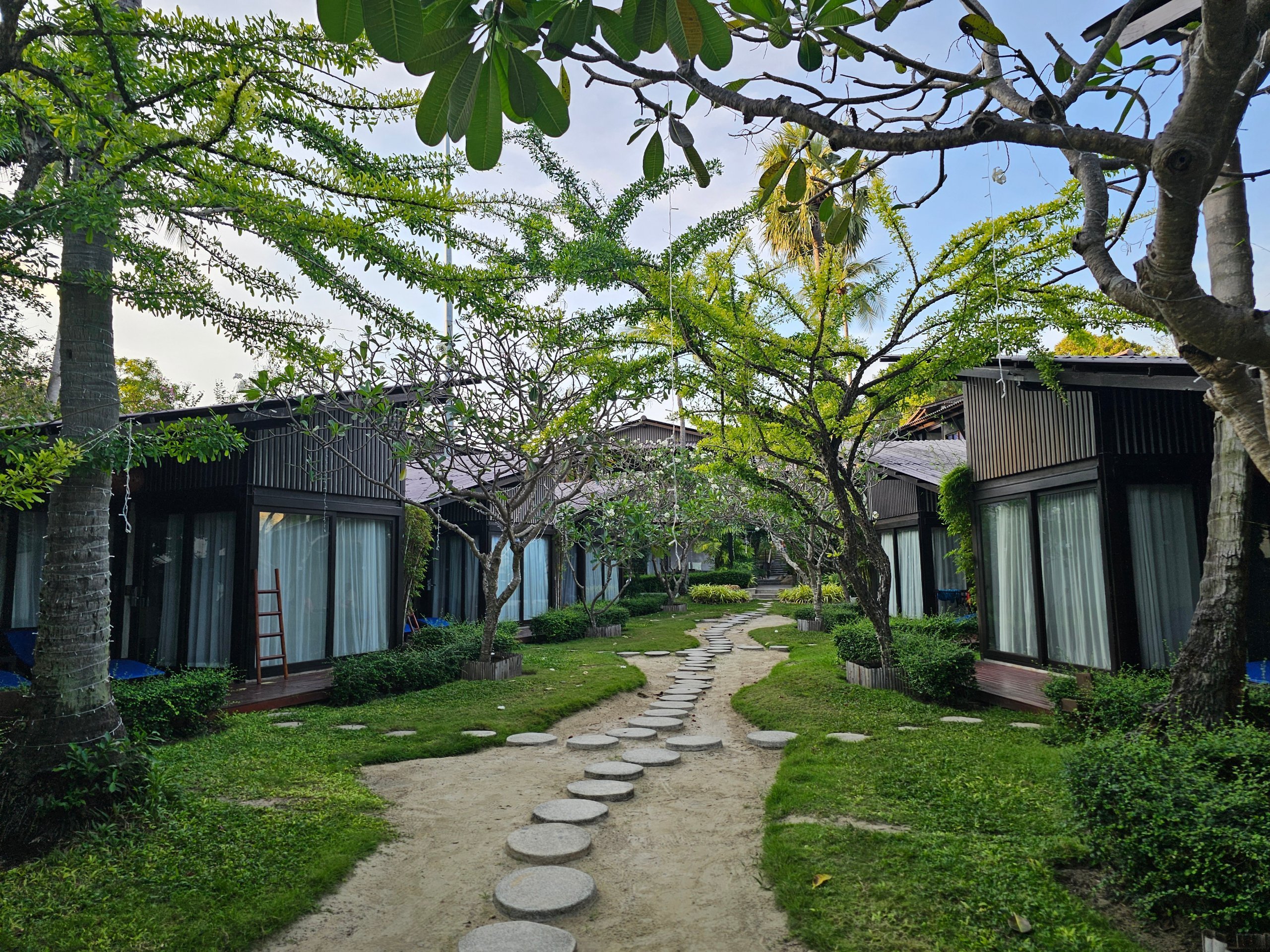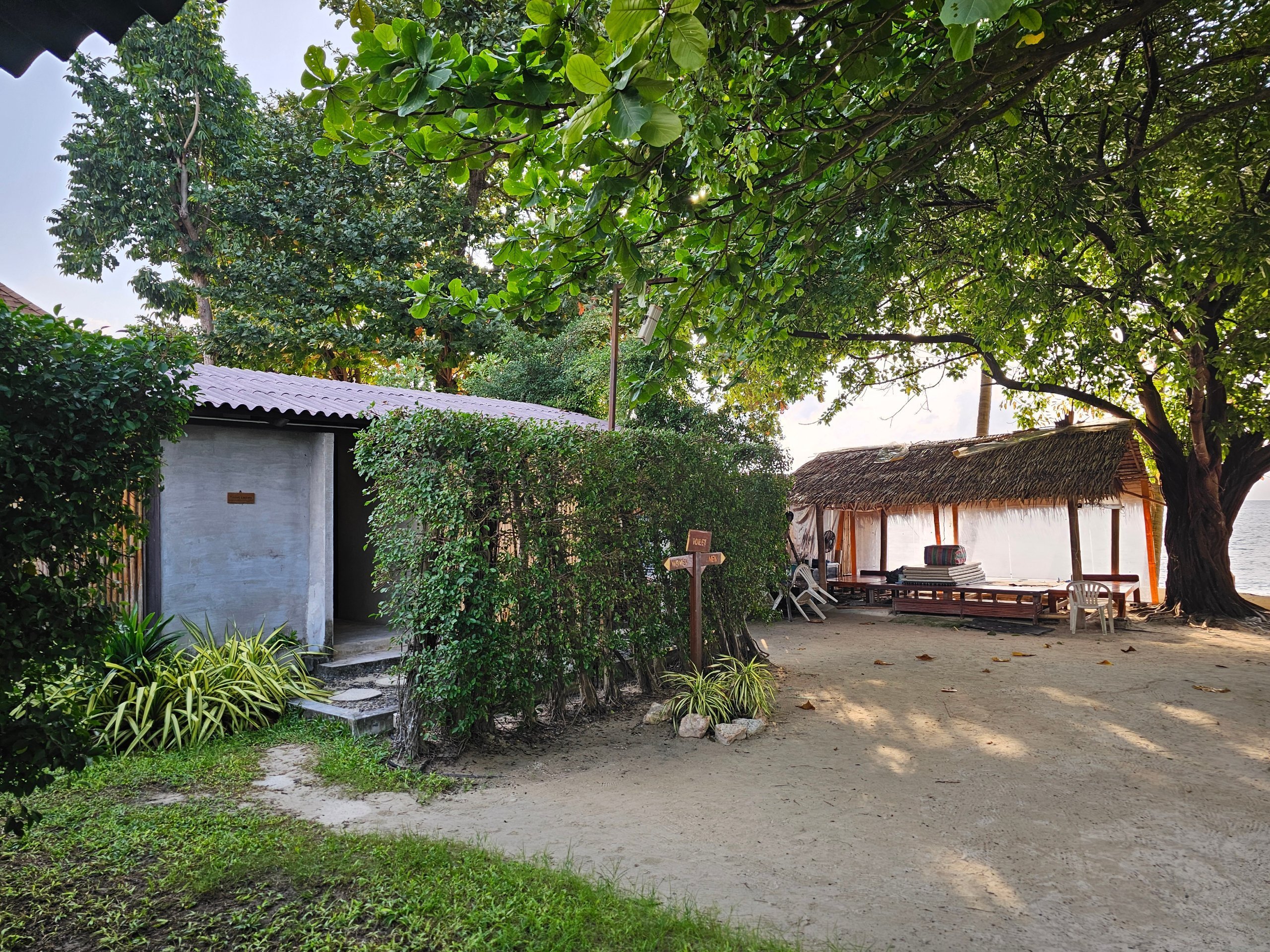 Och även om ingången till orten är direkt från huvudvägen, är de enskilda rummen och bungalowerna separerade från staden med en liten stenmassa, så liv och rörelse av bilar och motorcyklar når inte alls hit.