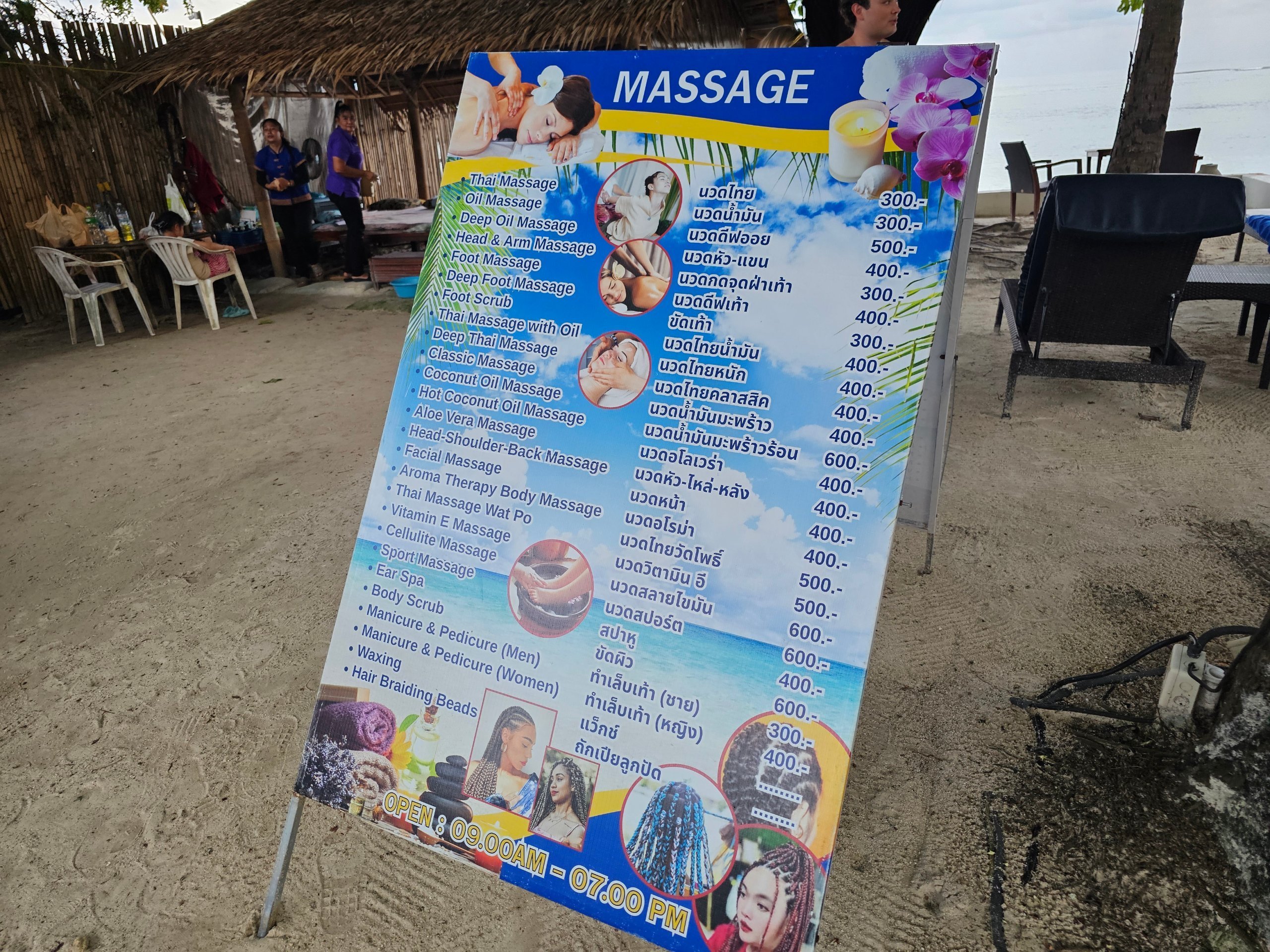 - Massage - direkt på hotellstranden bredvid poolen, priser från 300 thb för 1 timme
