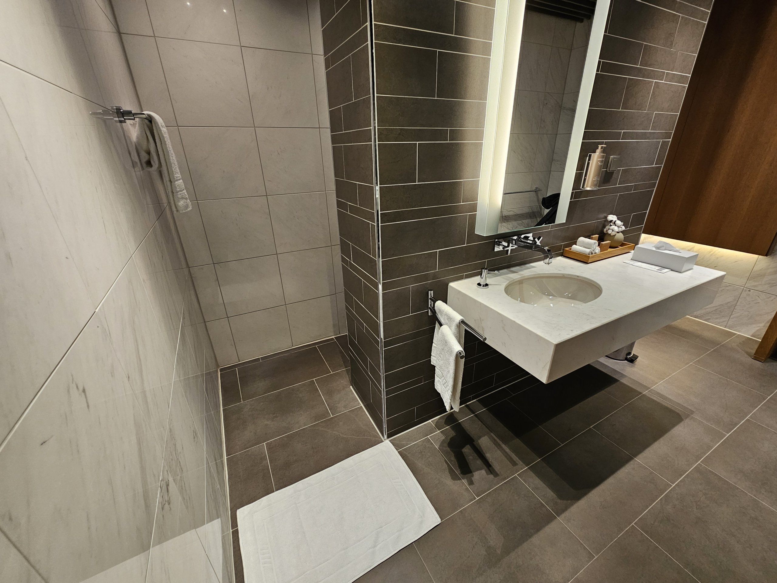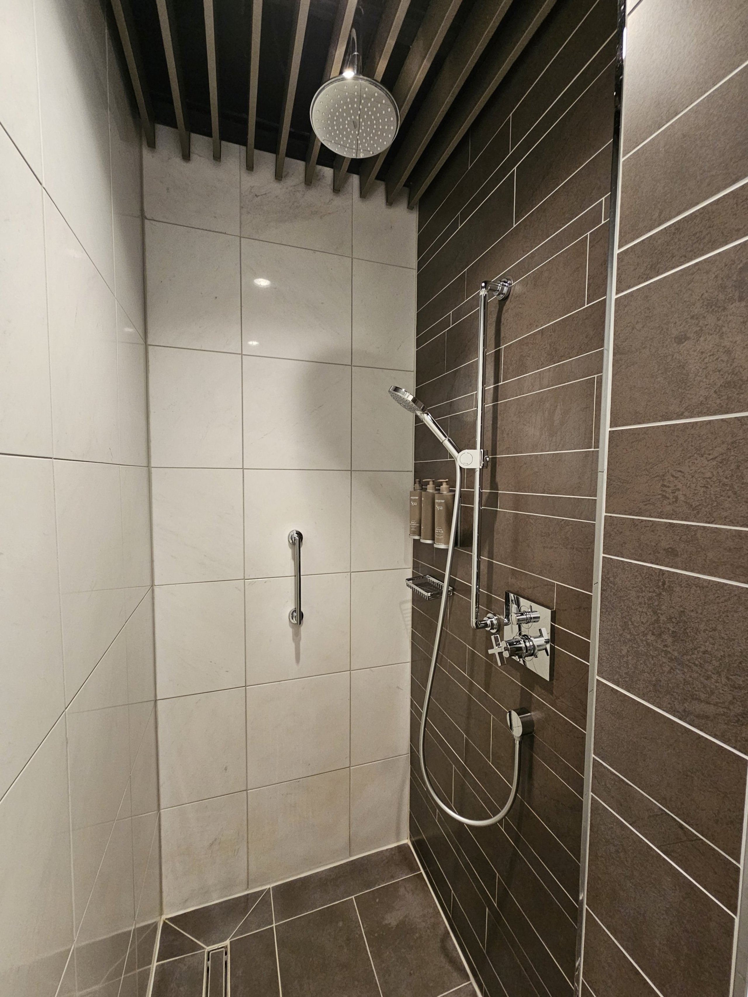 Efter en lång flygning på 14 timmar kommer en stor och ren dusch väl till pass.
