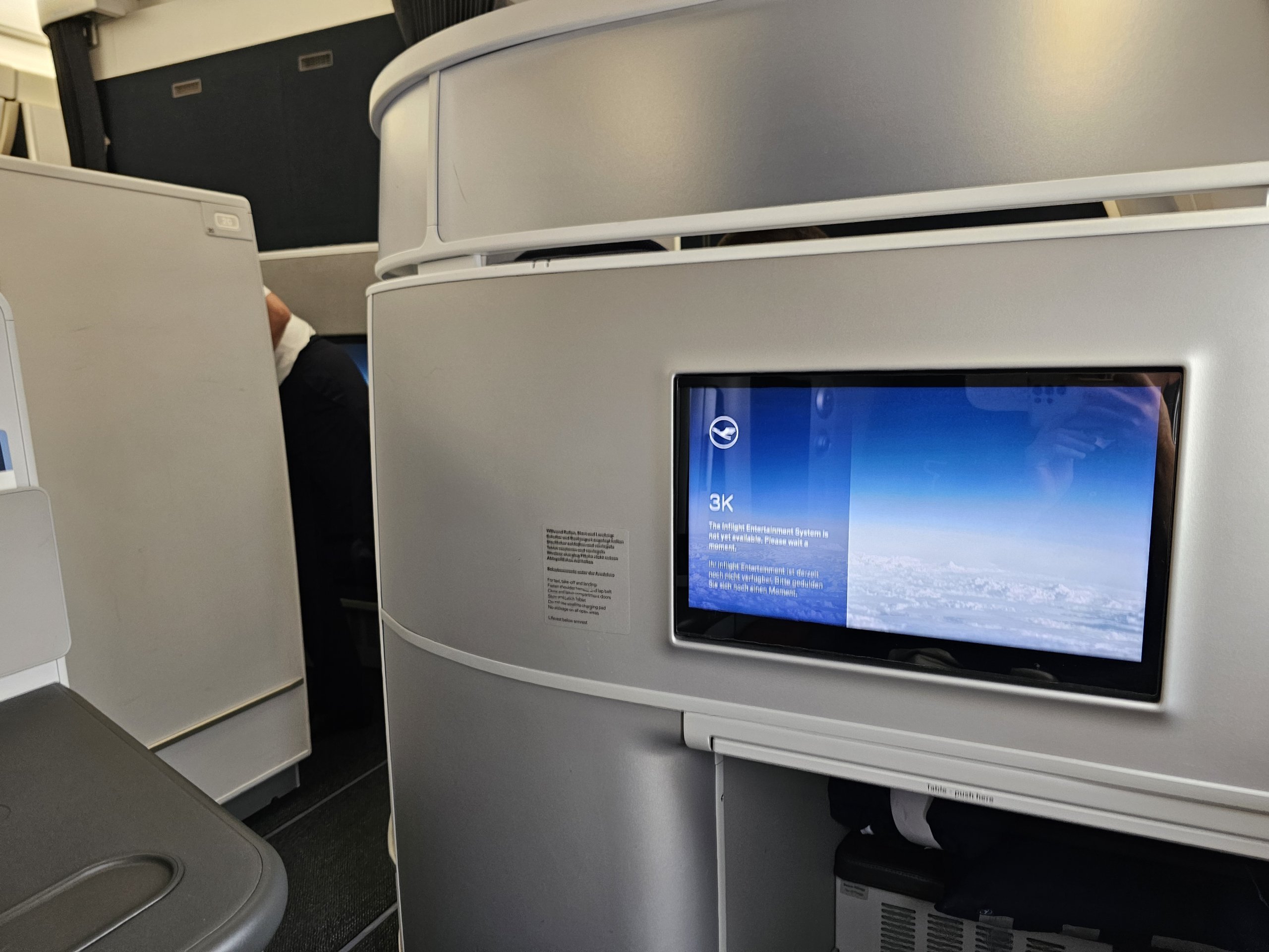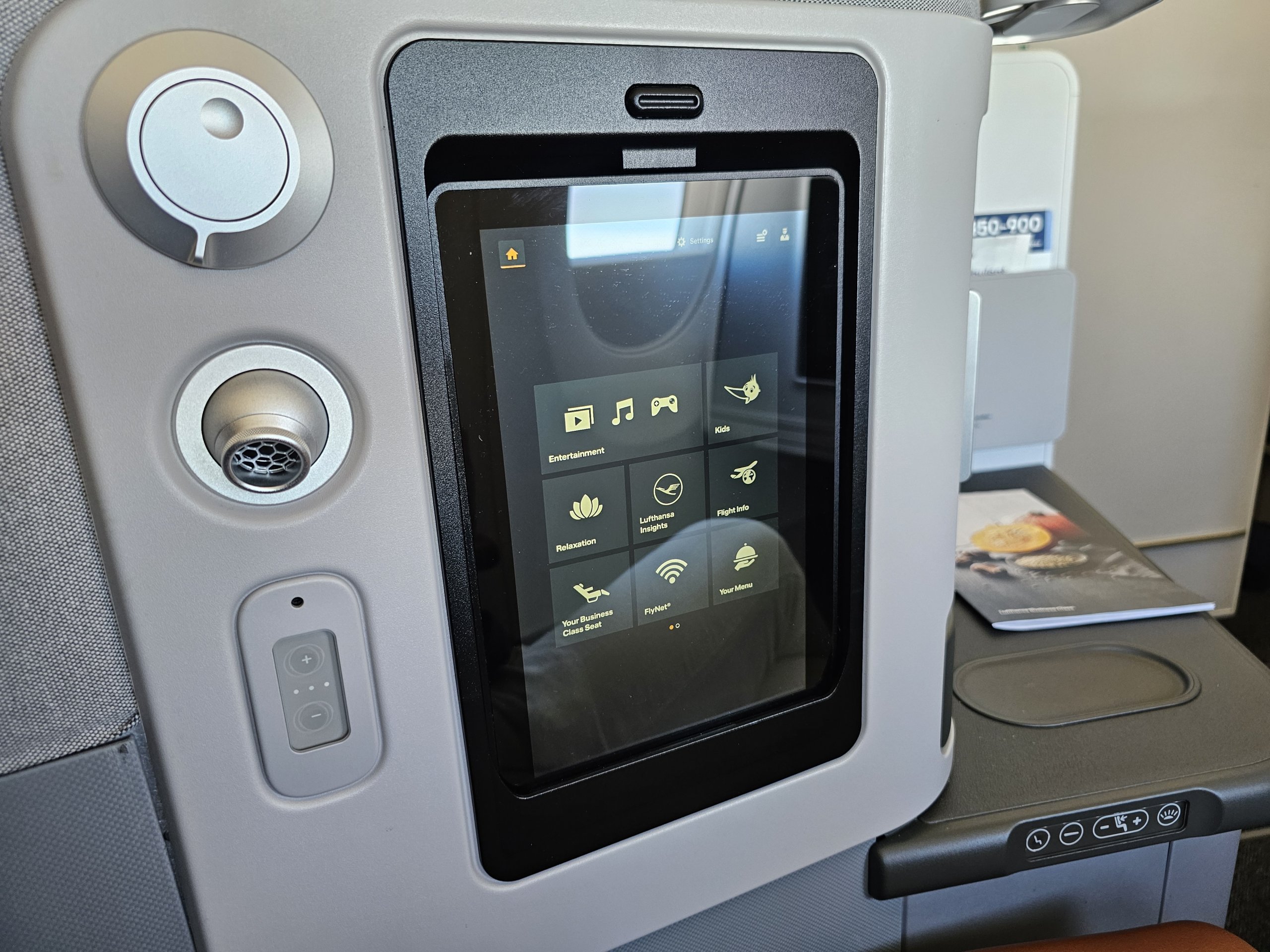 Monitorn med 4K-upplösning är fantastisk. Kontrollerna är antingen pekskärm direkt på monitorn eller via en surfplatta vid sätet så att du kan styra IFE med sätet lutat eller från sängen.