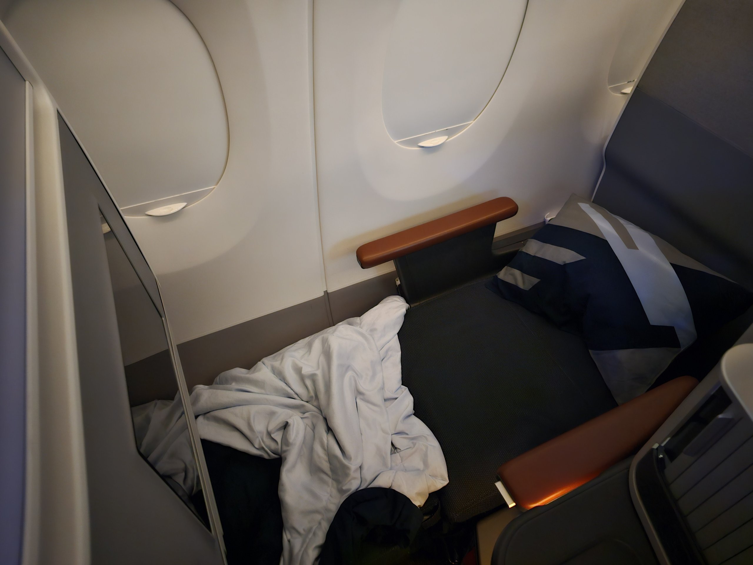 Även om det var en dagsflygning var jag tvungen att prova sängen i business class.