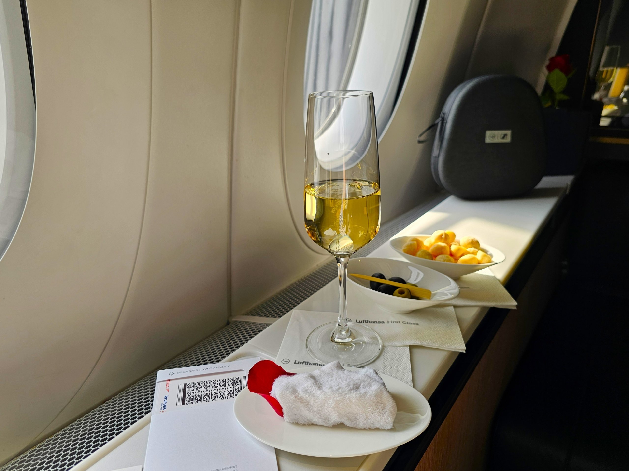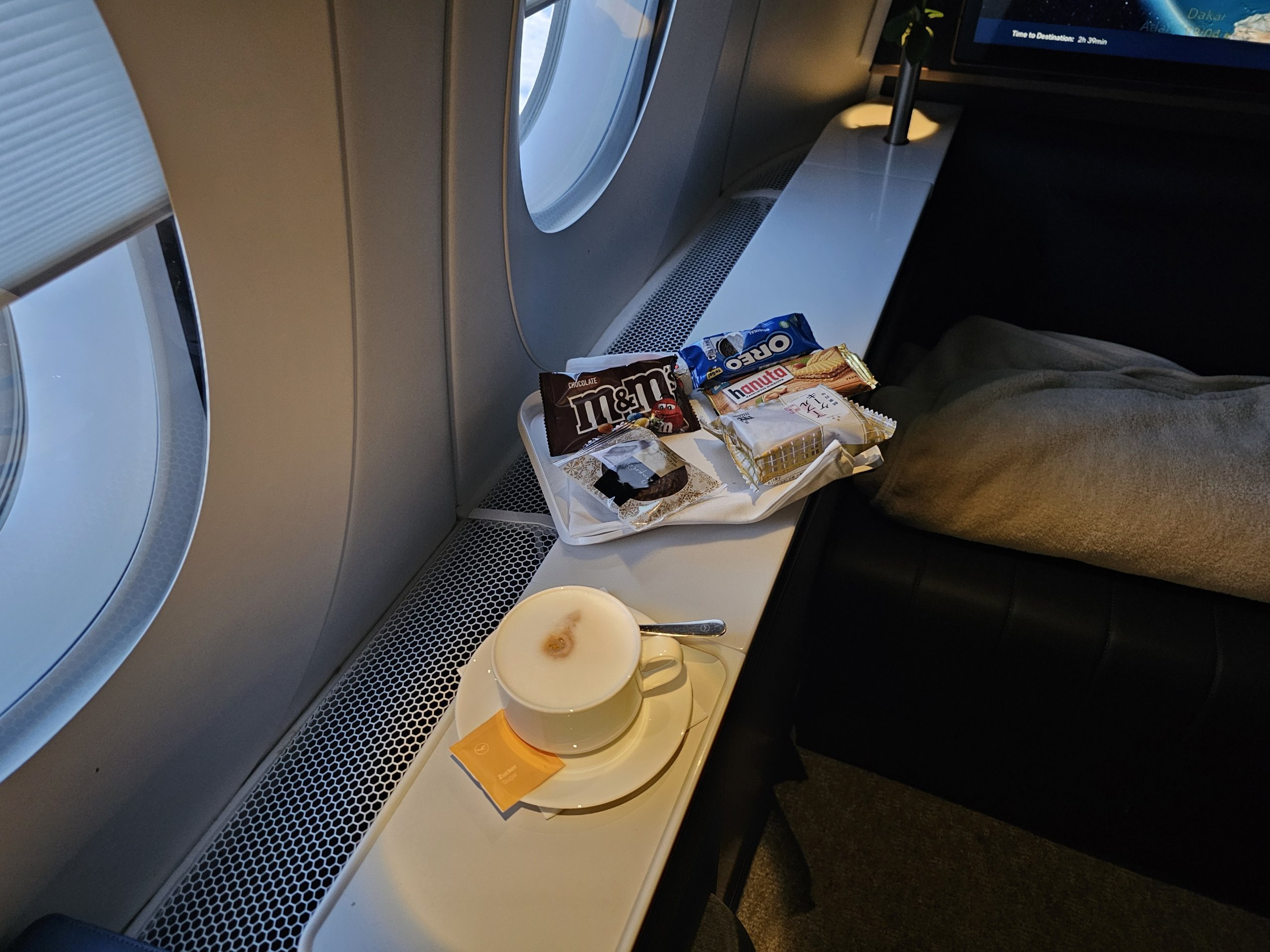Utbudet av frukostmat är lite svagt, men det är bra med mig eftersom jag redan vet från att flyga från Frankfurt till Japan att First Class-tjänsten på Lufthansa är mer än tillräcklig.