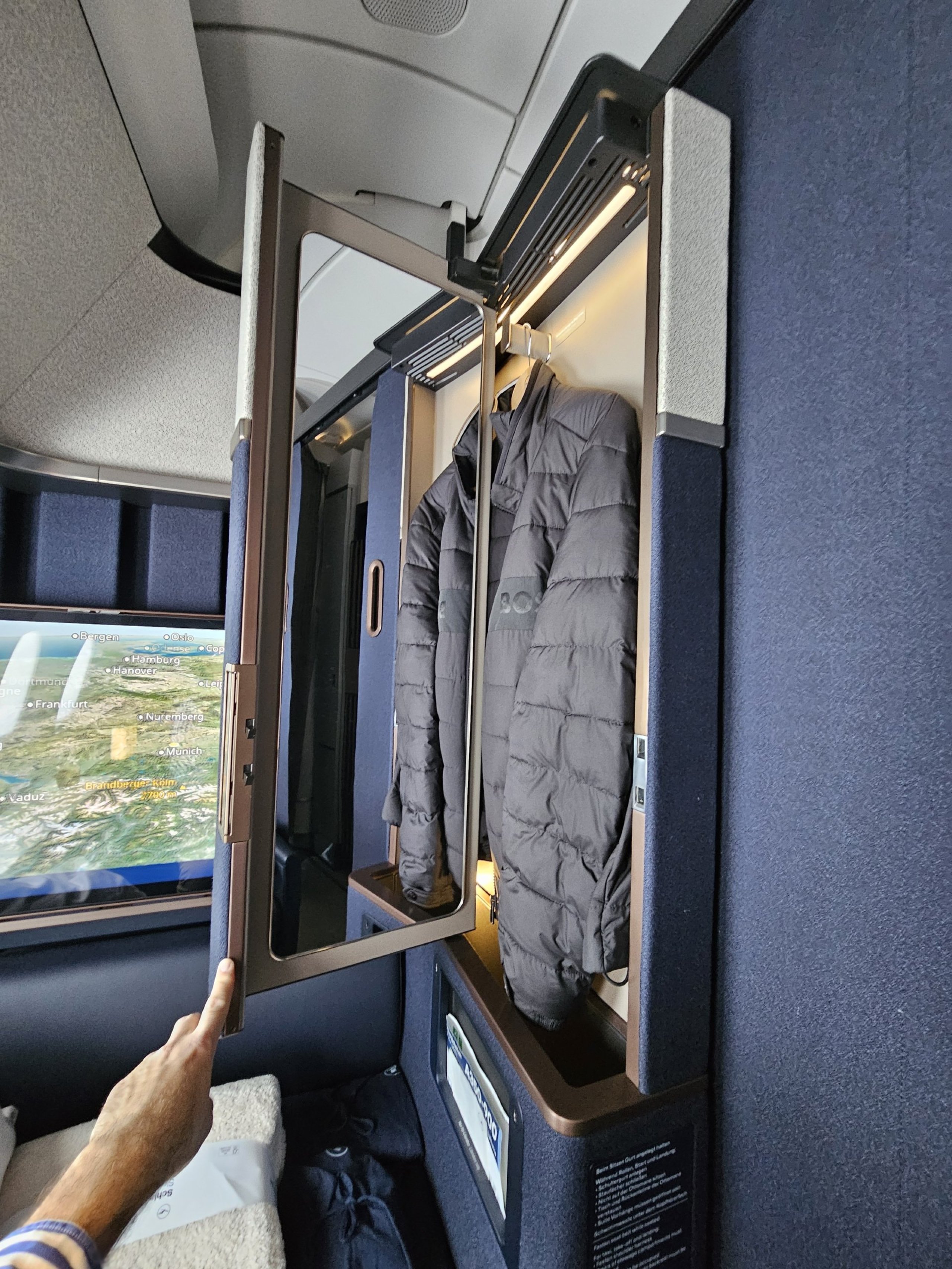 Designen är ganska stram på tyska, men för mig mycket elegant! Visst, Air Frances nya La Premiere kan vara mer rolig i design, men återigen har den inte en dörr eller skärm från golv till tak, vilket är absolut nödvändigt för mig i första klass.